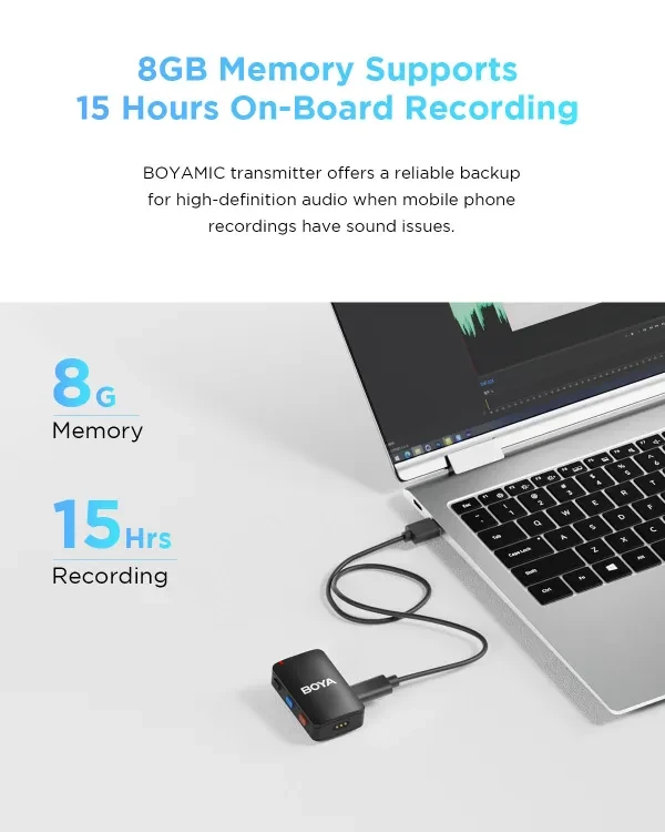 The Boya BOYAMIC All-in-One Wireless Microphone with On-Board Recording is designed to provide high-quality audio performance for various recording applications. With up to 200 meters of wireless transmission range, this system ensures reliable connectivity even in complex environments.