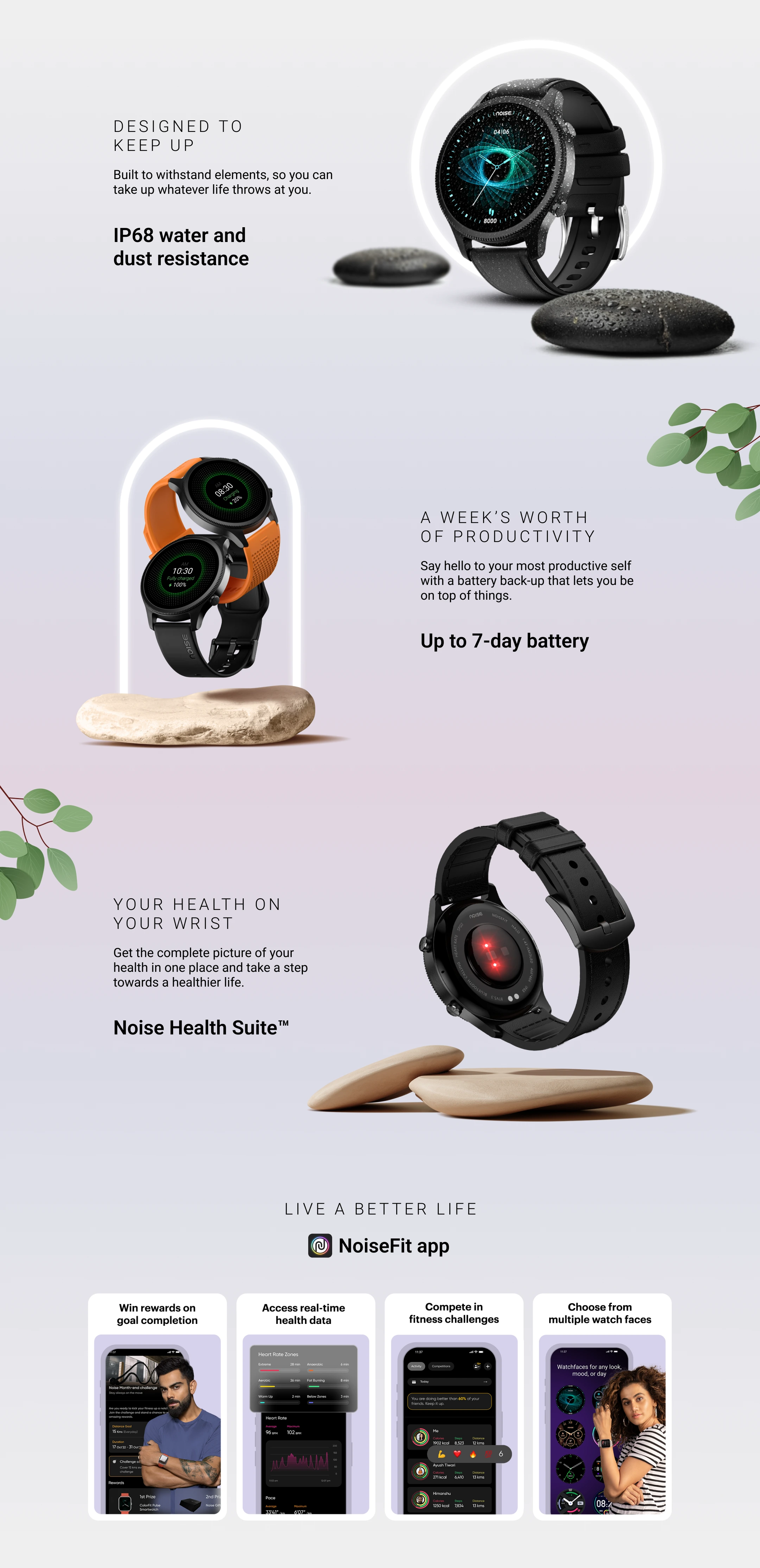 Answer: NoiseFit Halo has 150+ watch faces including some animated, cloud-based. You can also customize watch faces via the NoiseFit app.
