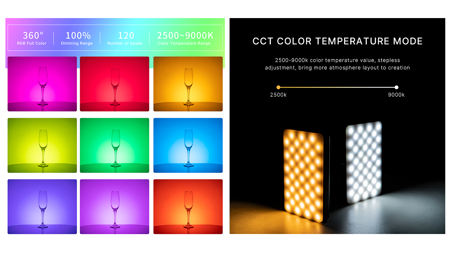 Color Temperature Adjustment: Adjustable from 2500K (warm) to 9000K (cool) for accurate lighting control in various shooting environments.