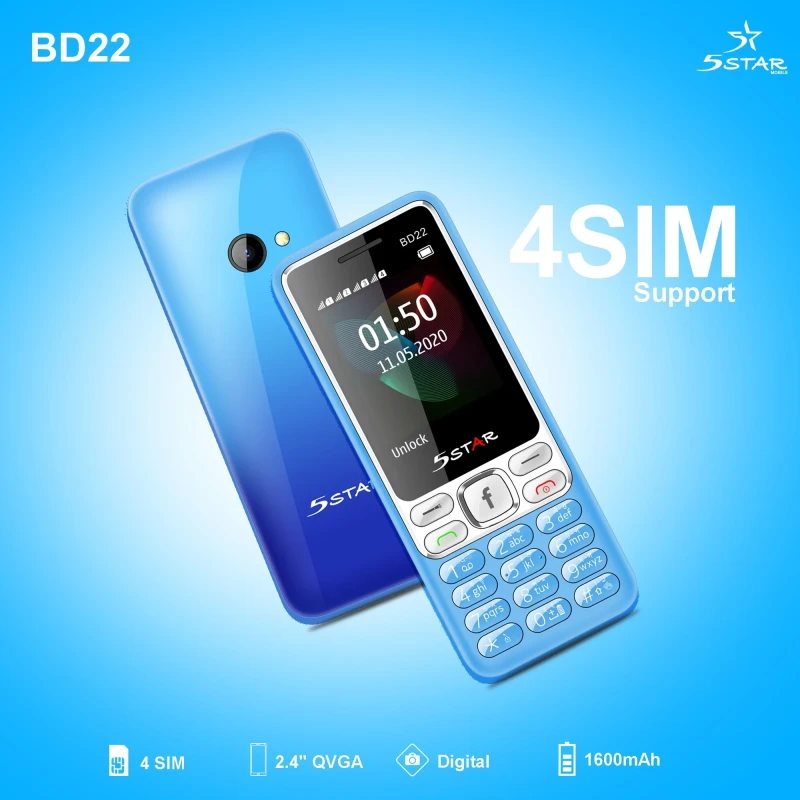 The latest price of 5 Star BD22 4-SIM Feature Phone in Bangladesh is ৳1,450. you can buy the 5 Star BD22 in Bangladesh at the best price from our website.