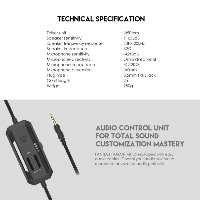 Specifications for the Fantech Valor MH86 Gaming Headphone: