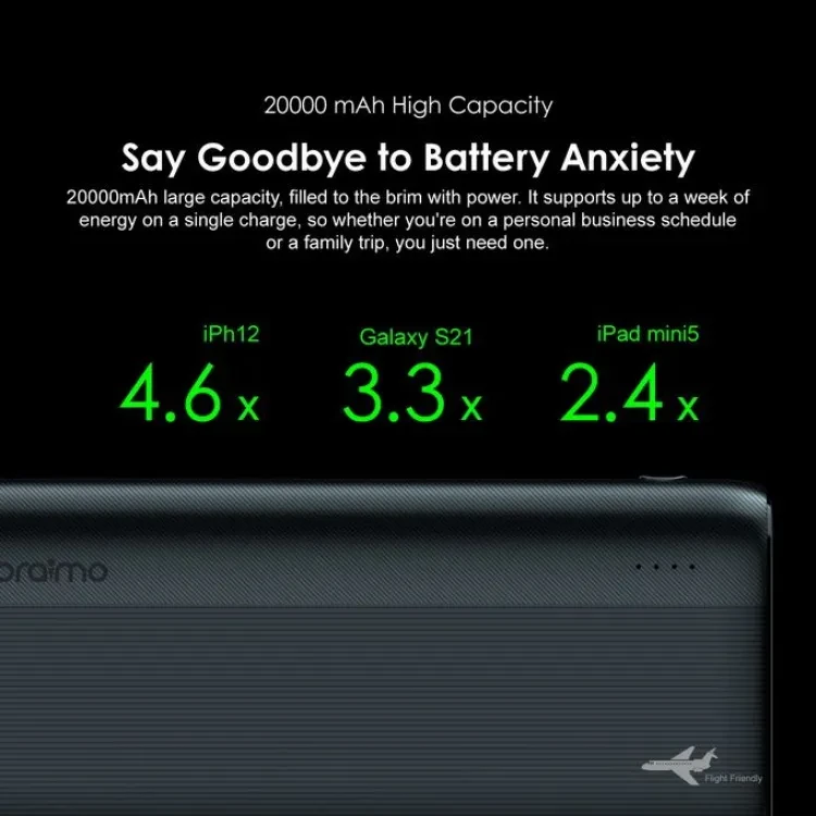 Ultra-High Capacity: 20000mAh capacity for extended usage.