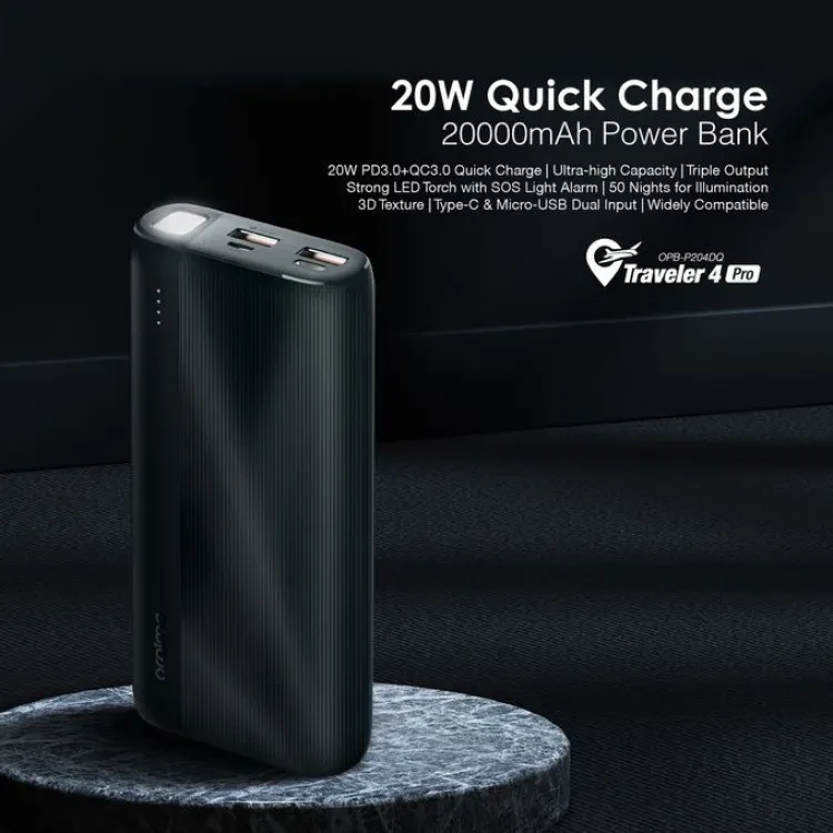 The Oraimo Traveler 4 Pro OPB-204DQ 20000mAh Power Bank is available now in Bangladesh. Get the original products at the most affordable price only at Ajkershop and enjoy the quality with the promise of the best customer service in Bangladesh.