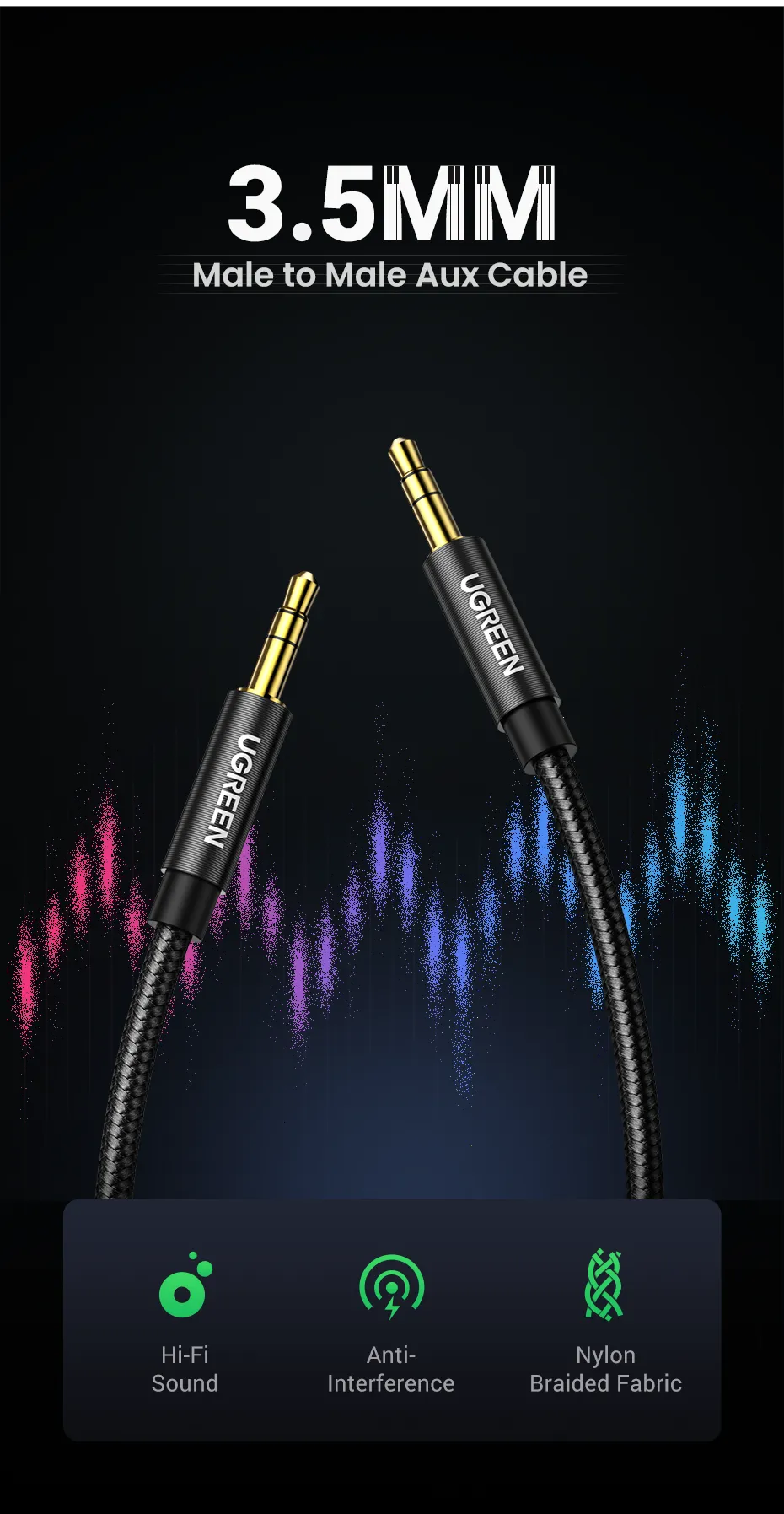 The Ugreen AV112 3.5mm Male To Male Round Cable is now available in Bangladesh. This high-quality audio cable delivers Hi-Fi stereo sound and is perfect for connecting smartphones, tablets, PCs, or audio devices to speakers, car stereos, or amplifiers. Get the original Ugreen products at the most affordable price only at Ajkershop.