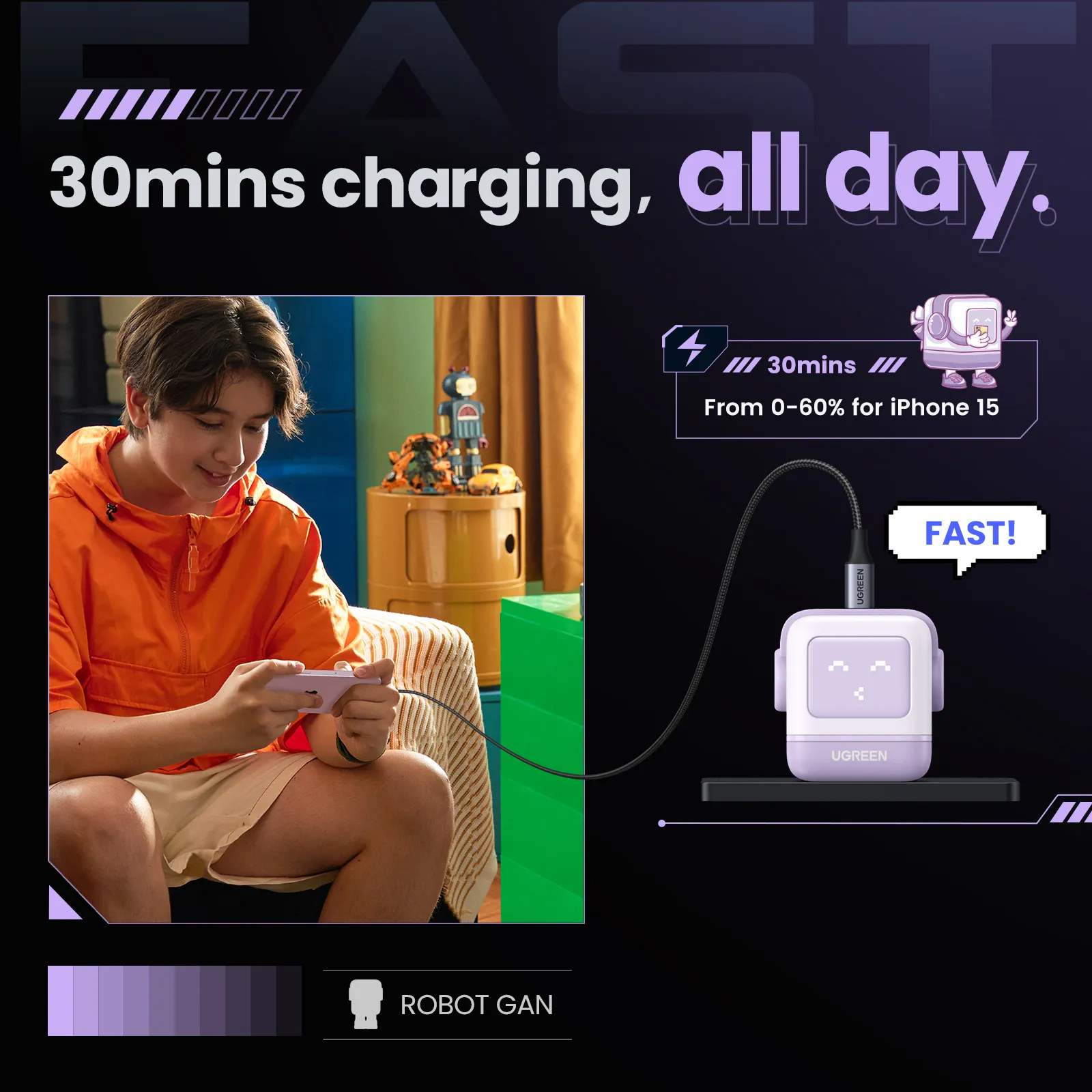 Special Features: GaN Technology, Robot LED Display, Thermal Protection, Magnetic Base