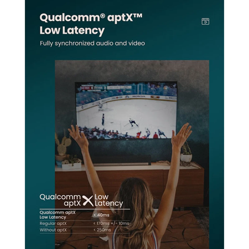 The UGREEN CM150 Bluetooth 5.0 Transmitter transforms any non-Bluetooth device with optical output (like TV, PS5, or PC) into a Bluetooth-capable one. Whether you want to watch late-night shows without disturbing others or stream music wirelessly from your computer, this transmitter ensures seamless, high-fidelity audio transfer. With support for aptX low latency, audio stays synced with visuals — making it ideal for gaming and movies.