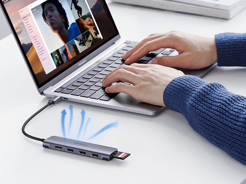 Ugreen CM195 (70410) Type-C Male to SD, TF, Tri USB 3.0 & HDMI Female Space Gray Hub Price in Bangladesh