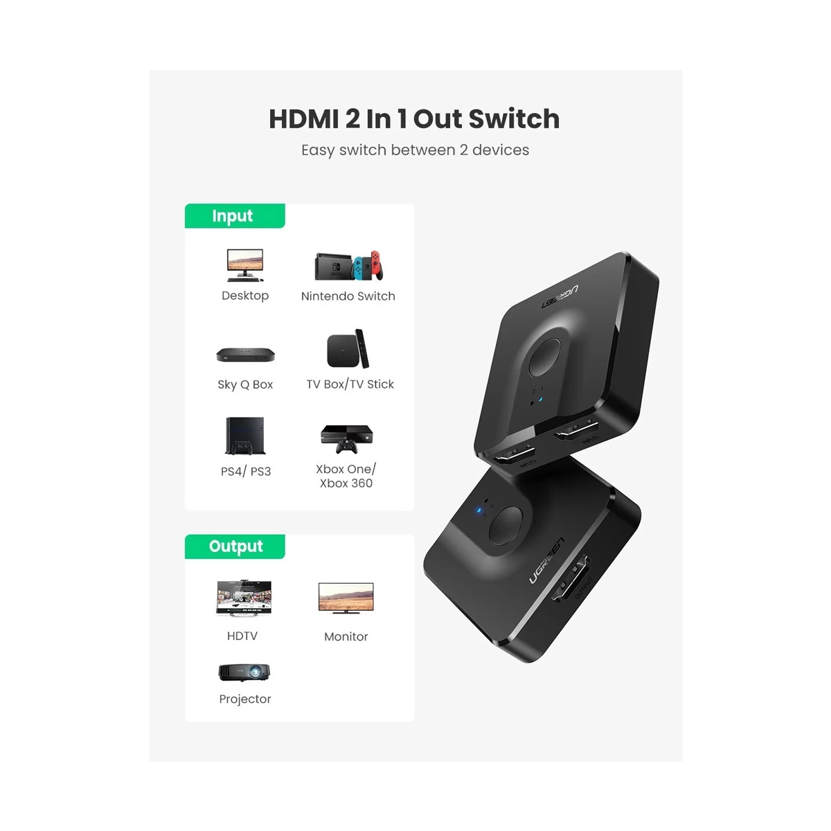 Ugreen CM217 (50966) 2 In 1 Out HDMI Switcher 4K 60Hz Price in Bangladesh