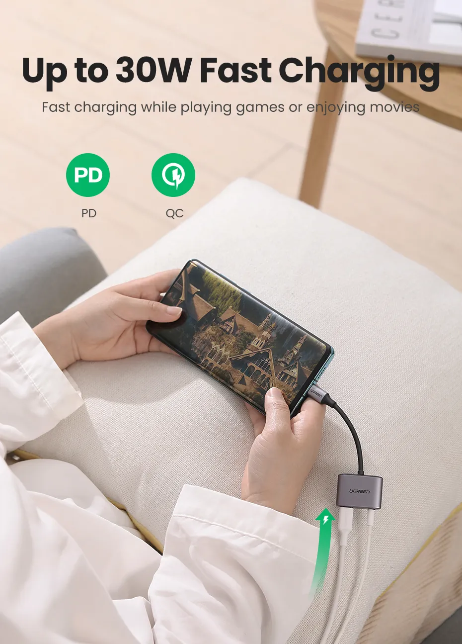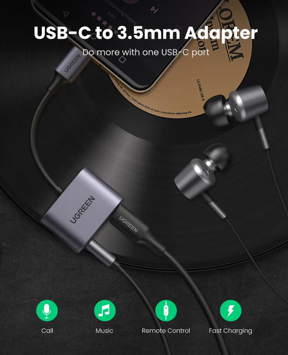 The Ugreen CM231 USB-C to 3.5mm and USB-C Adapter is the perfect accessory for USB-C devices that lack a headphone jack. Whether you're on the move or multitasking at your desk, it allows you to charge your phone and listen to music or take calls simultaneously. With Hi-Fi level sound quality and no audio lag, this adapter ensures an uninterrupted, immersive experience. The sleek metal design adds a premium touch and fits seamlessly with your modern devices. It’s the ideal solution for music lovers, professionals, and travelers.
