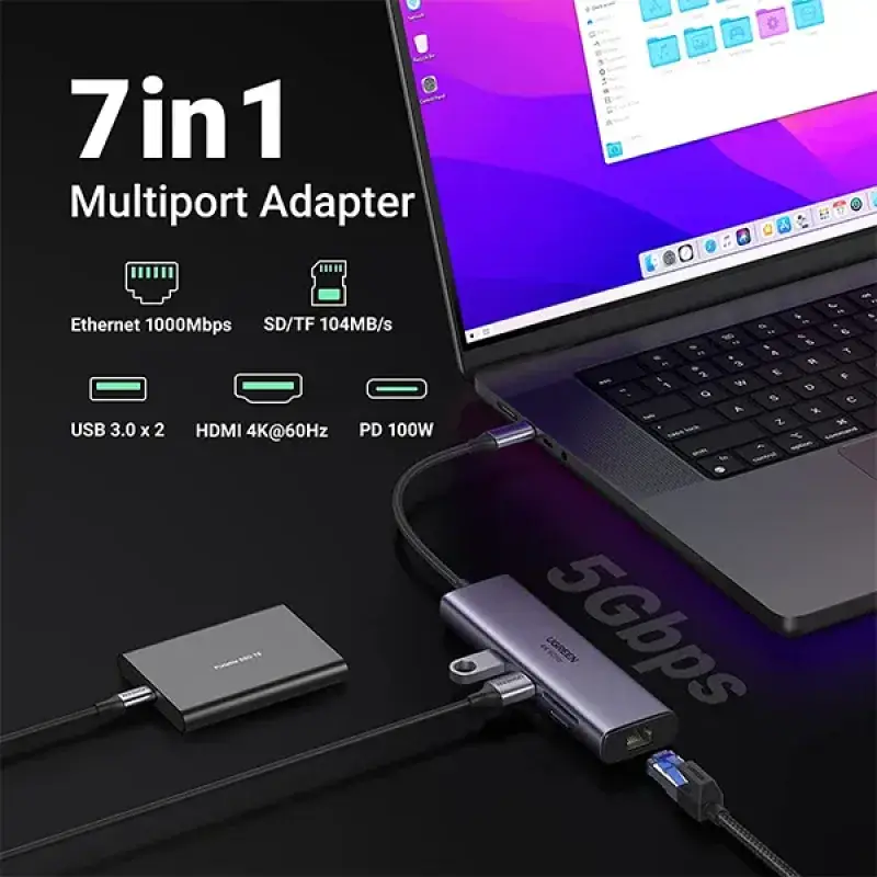 Buy Ugreen CM498 (45379) 7-in-1 Type-C Hub in Bangladesh