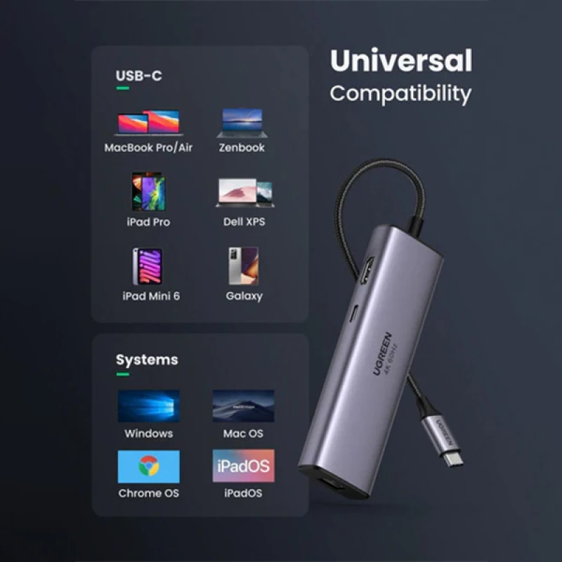 The Ugreen CM512 (60515) 7-in-1 4K HDMI USB C Hub is now available in Bangladesh at an affordable price. This all-in-one hub offers multiple connectivity options including USB 3.0 ports, HDMI output, SD/TF card reader, Gigabit Ethernet, and 100W PD fast charging—making it perfect for both work and entertainment.