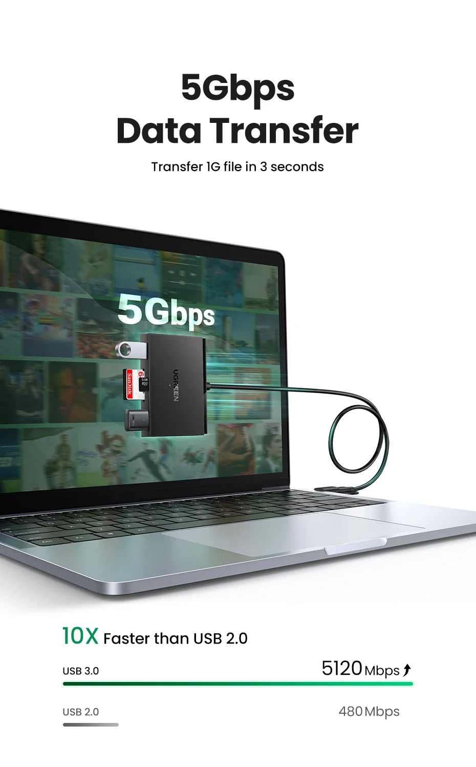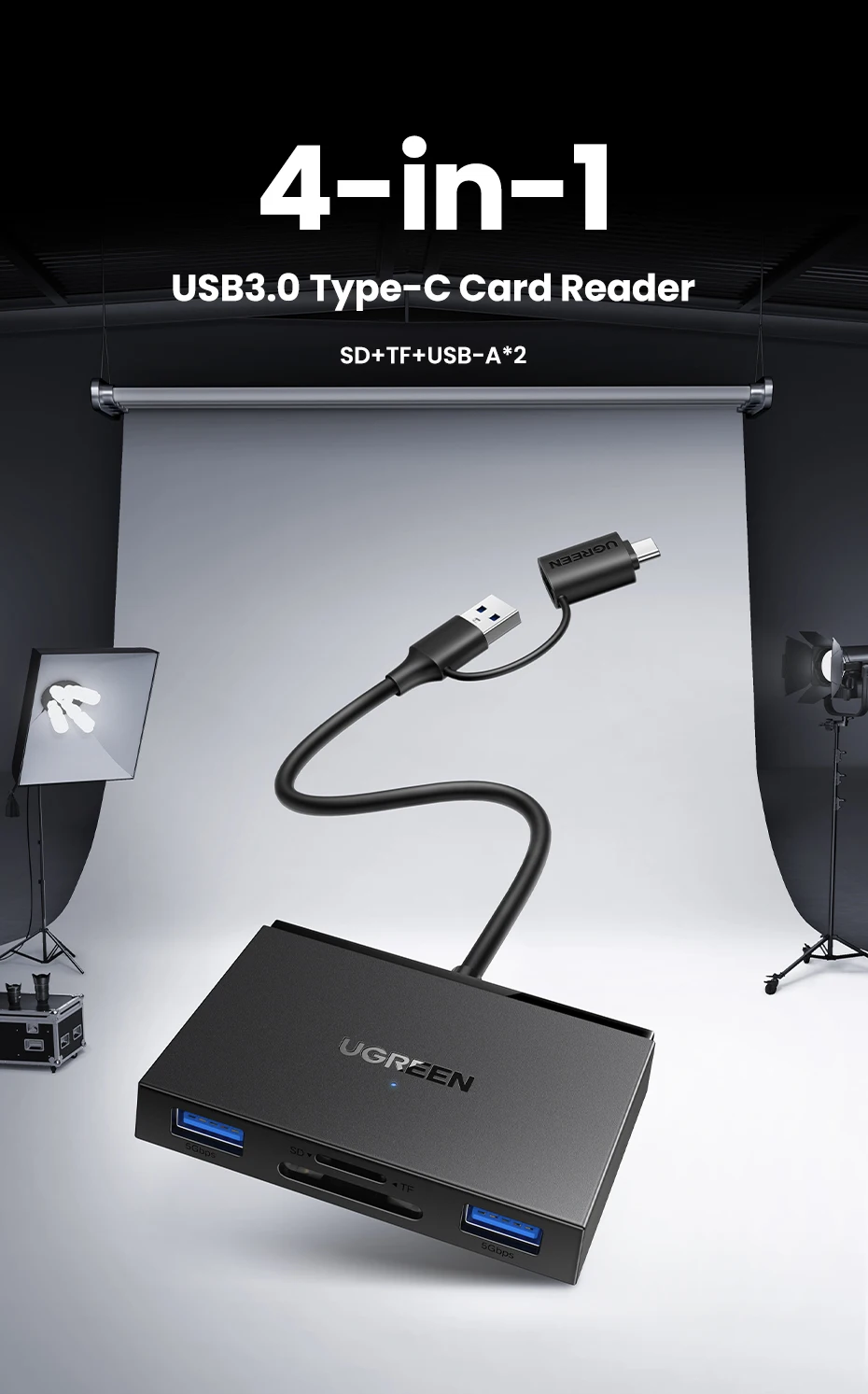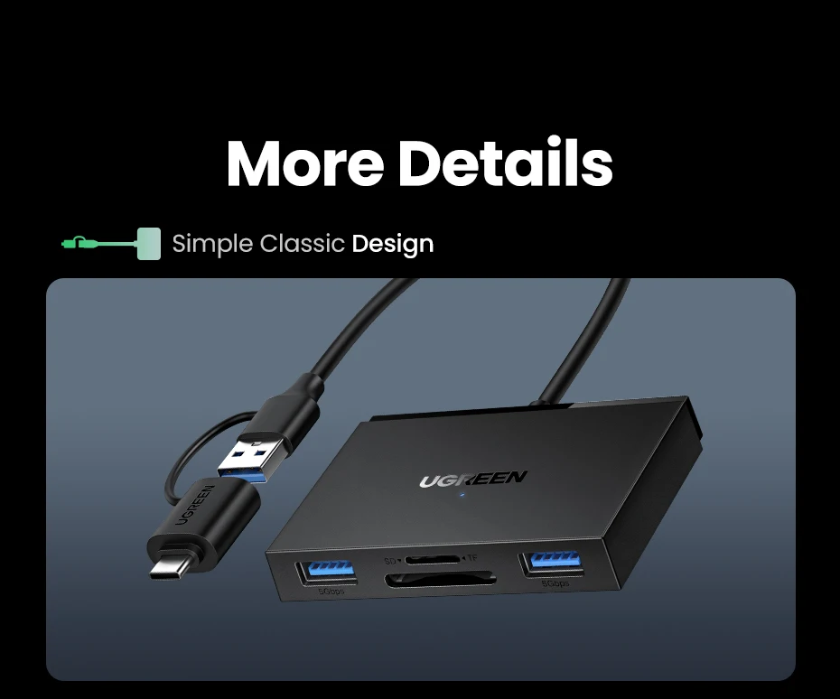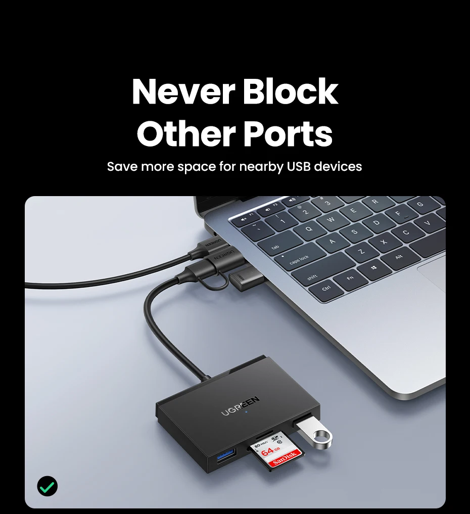 Whether you need to back up camera photos, move large files, or connect USB peripherals on the go, this Ugreen card reader provides a seamless and fast experience. Its slim profile and robust build make it an ideal companion for travel or daily use.