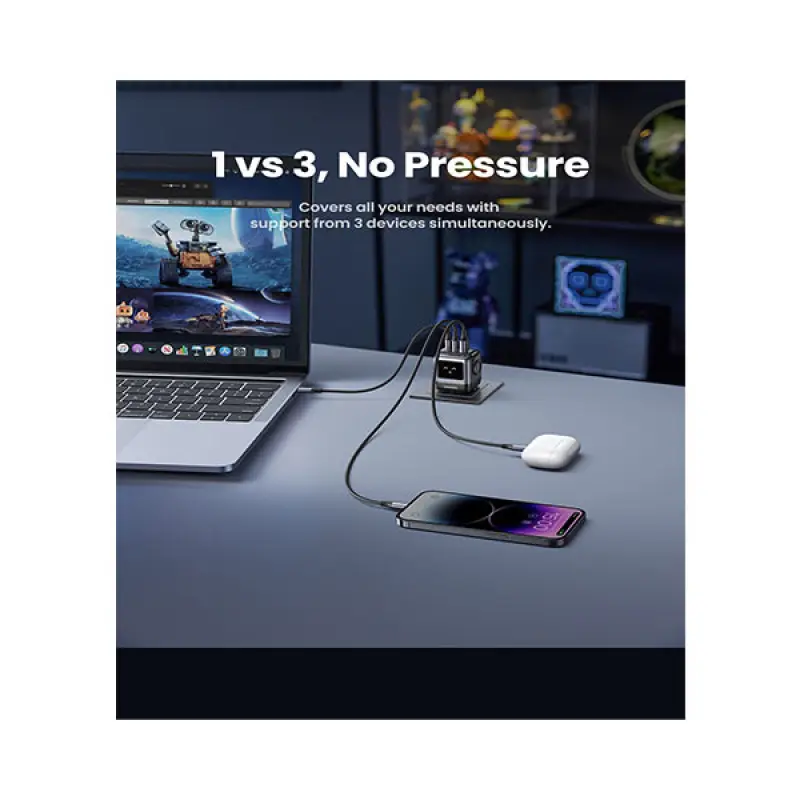 The Ugreen Nexode RG CD361 (35291) 65W GaN Fast Charger – EU Version is now available in Bangladesh at the best price. This powerful 3-port fast charger features the latest GaNFast technology, offering high-speed and safe charging for laptops, smartphones, and tablets. Its compact and stylish robot-themed LED design makes it stand out from traditional chargers. You can buy the Ugreen Nexode RG CD361 65W GaN Fast Charger in Bangladesh for just ৳3050, only at Ajkershop – the trusted store for 100% original Ugreen accessories with top-notch service.