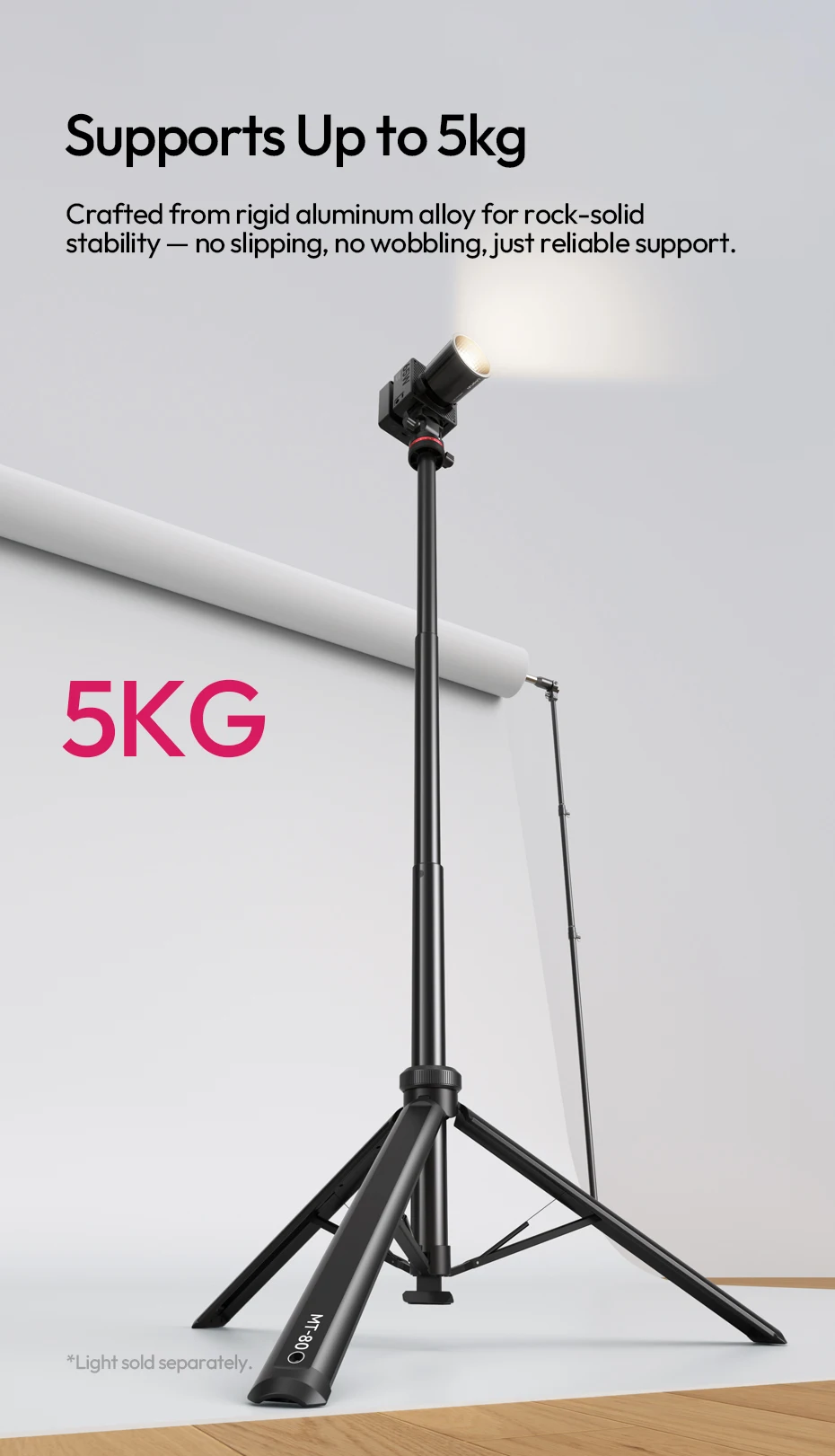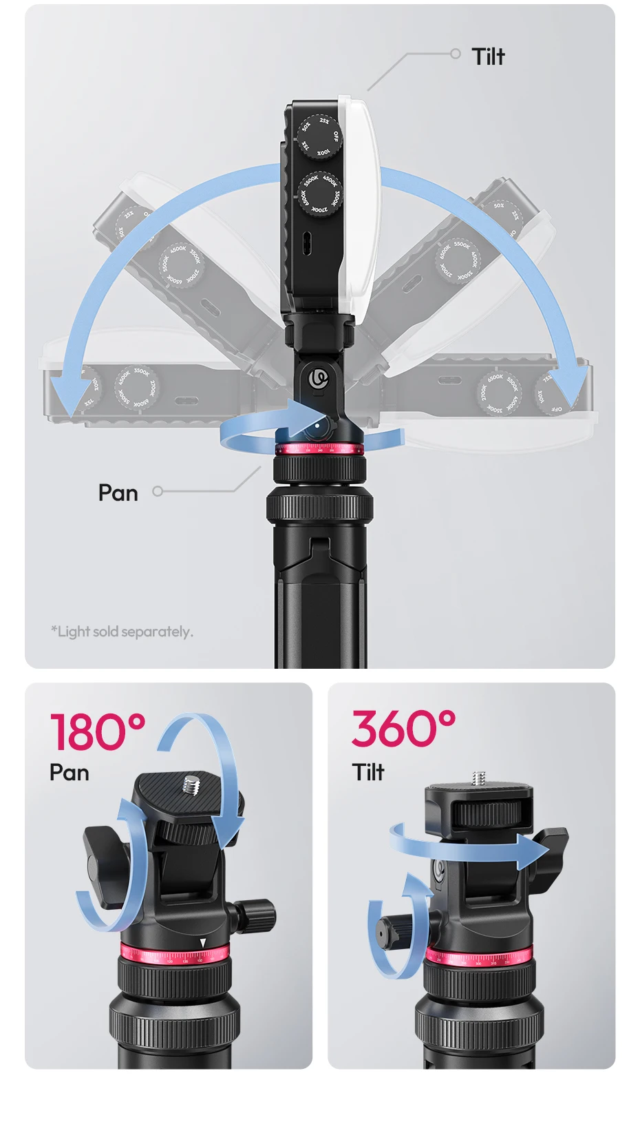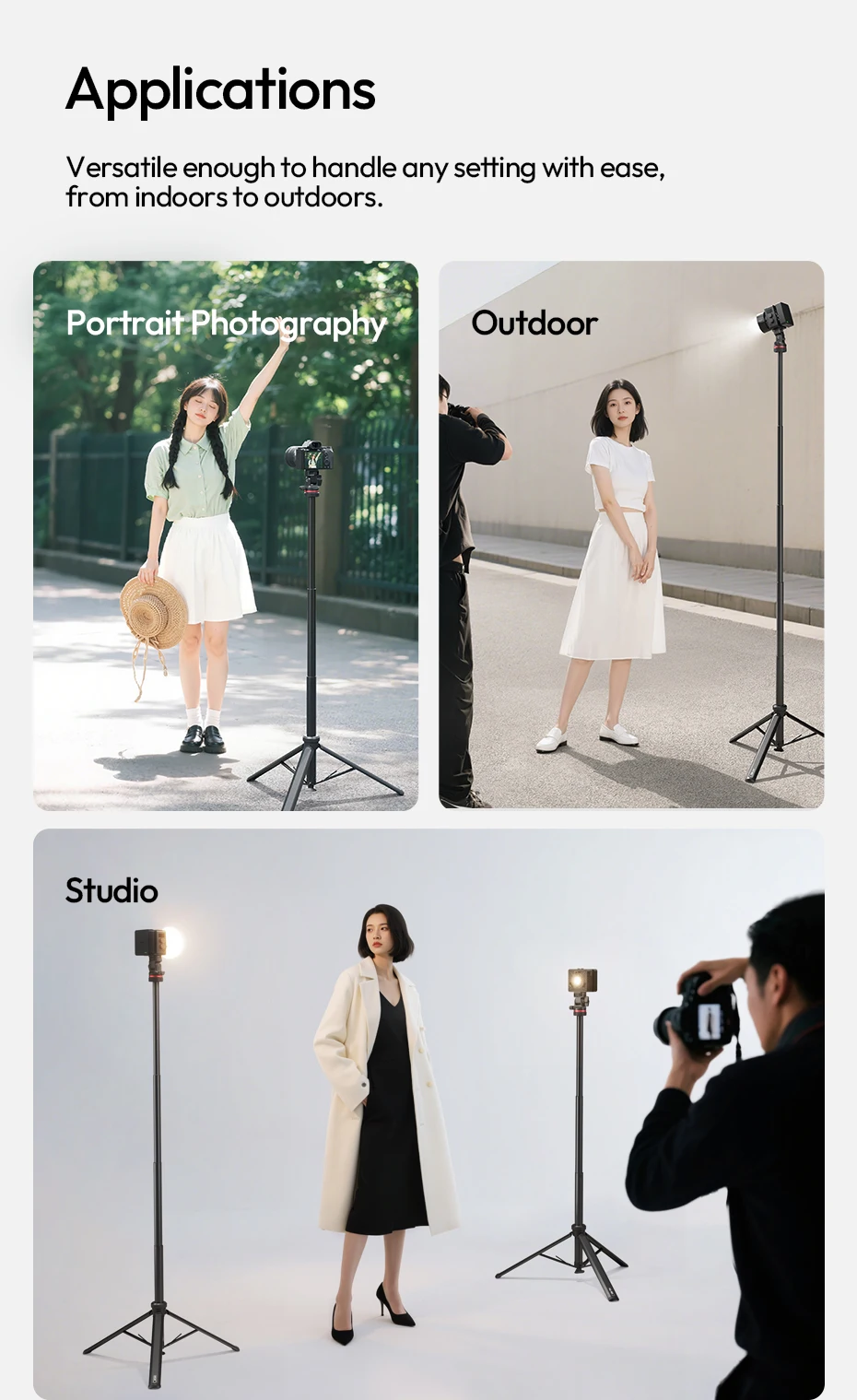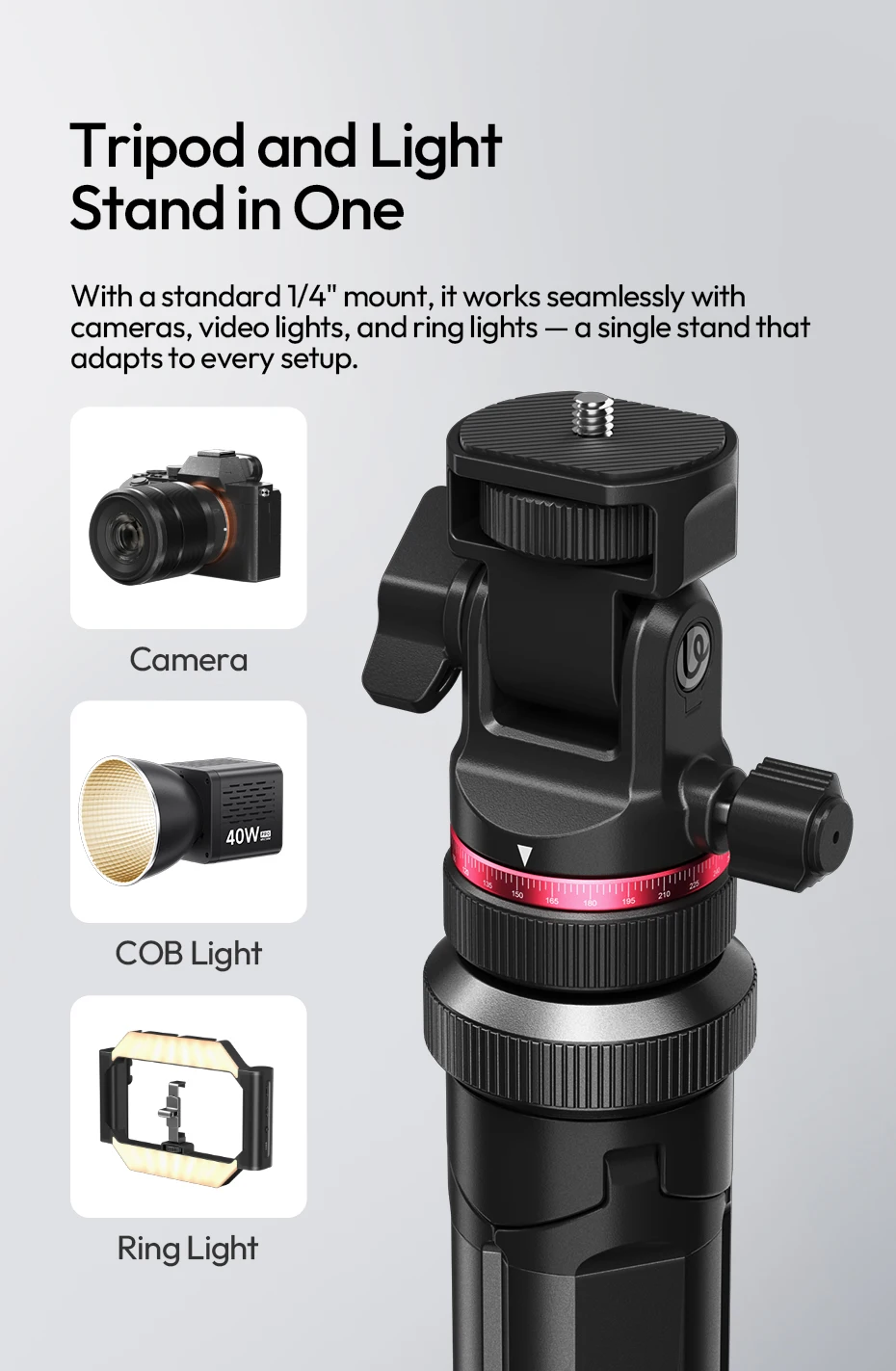 Compatible with cameras, video lights, ring lights