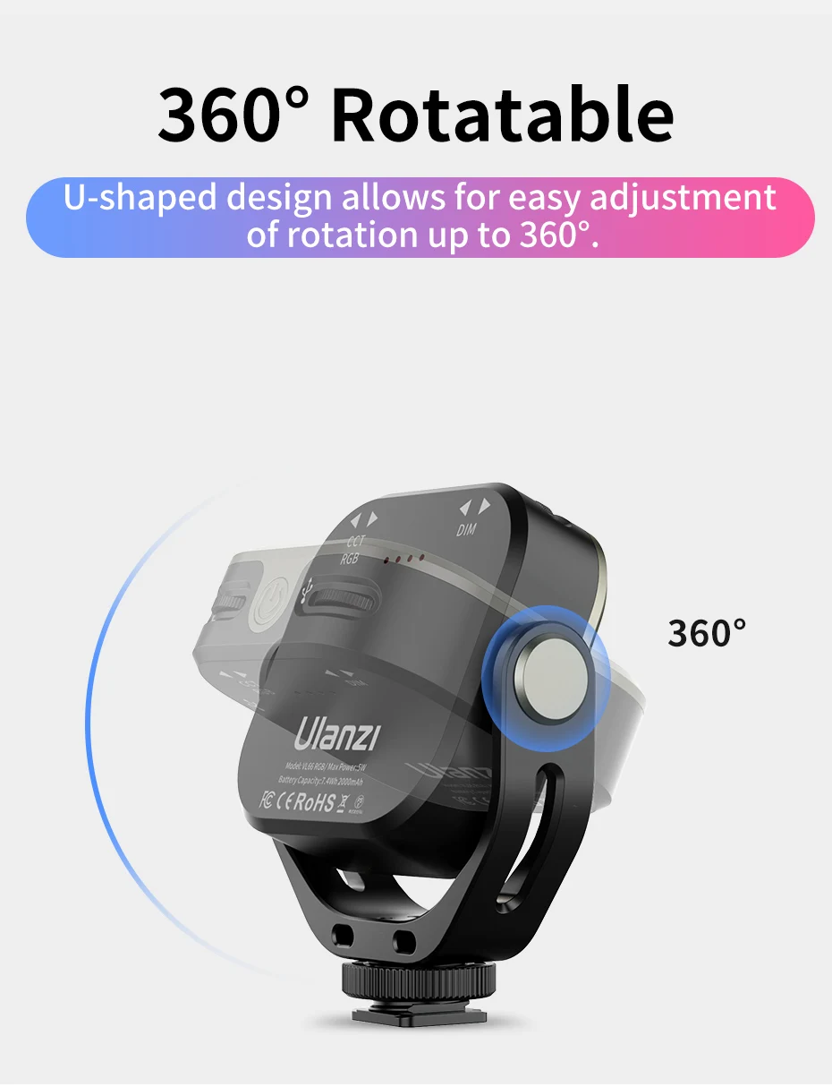 360° rotatable U-shaped stand for flexible lighting angles