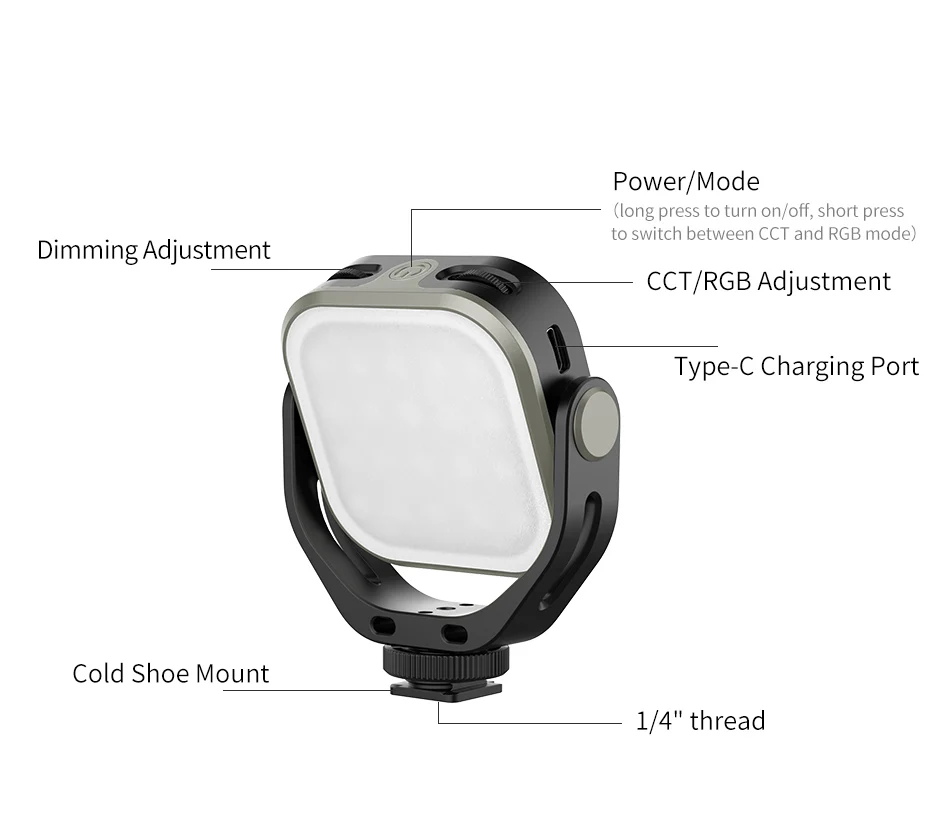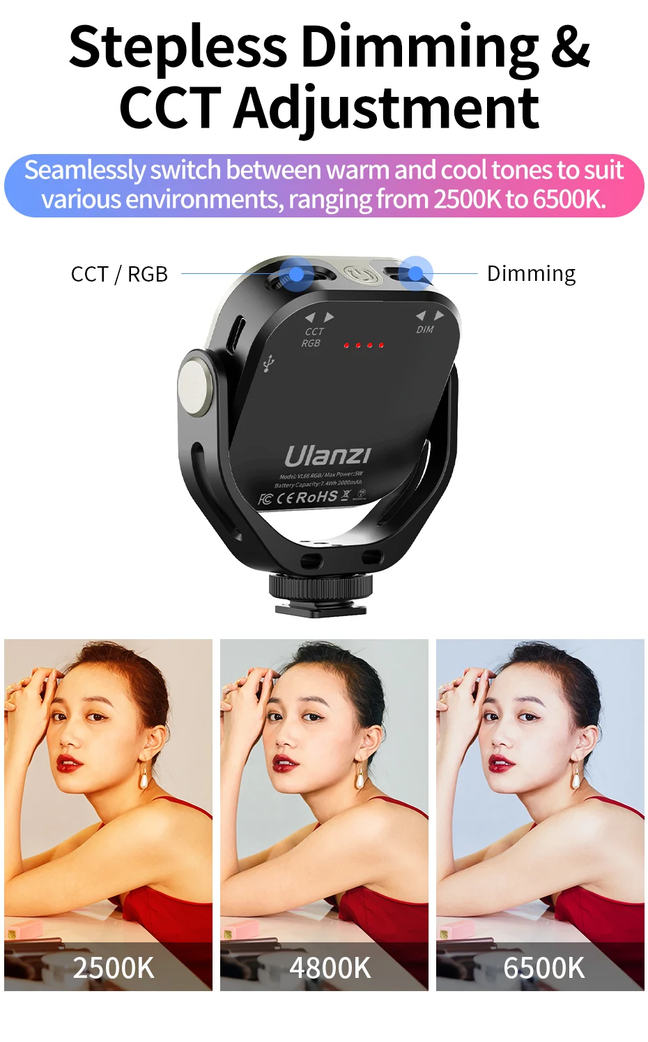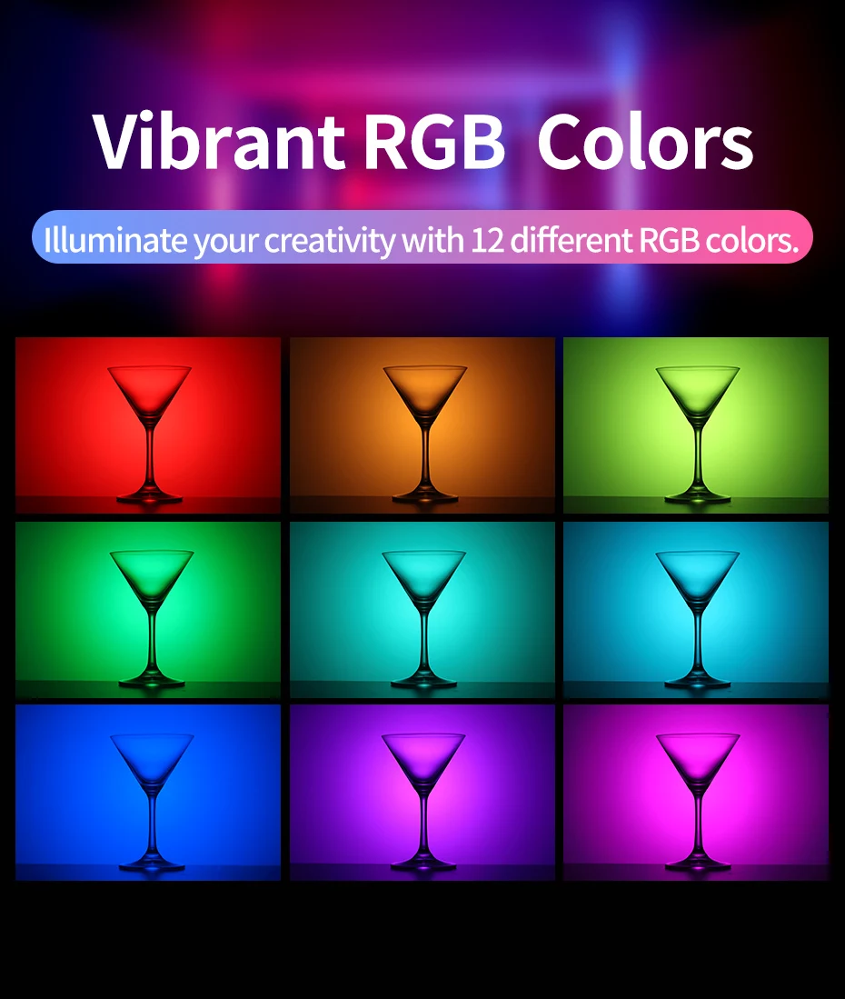 RGB mode with adjustable color temperature (3200K–6500K)