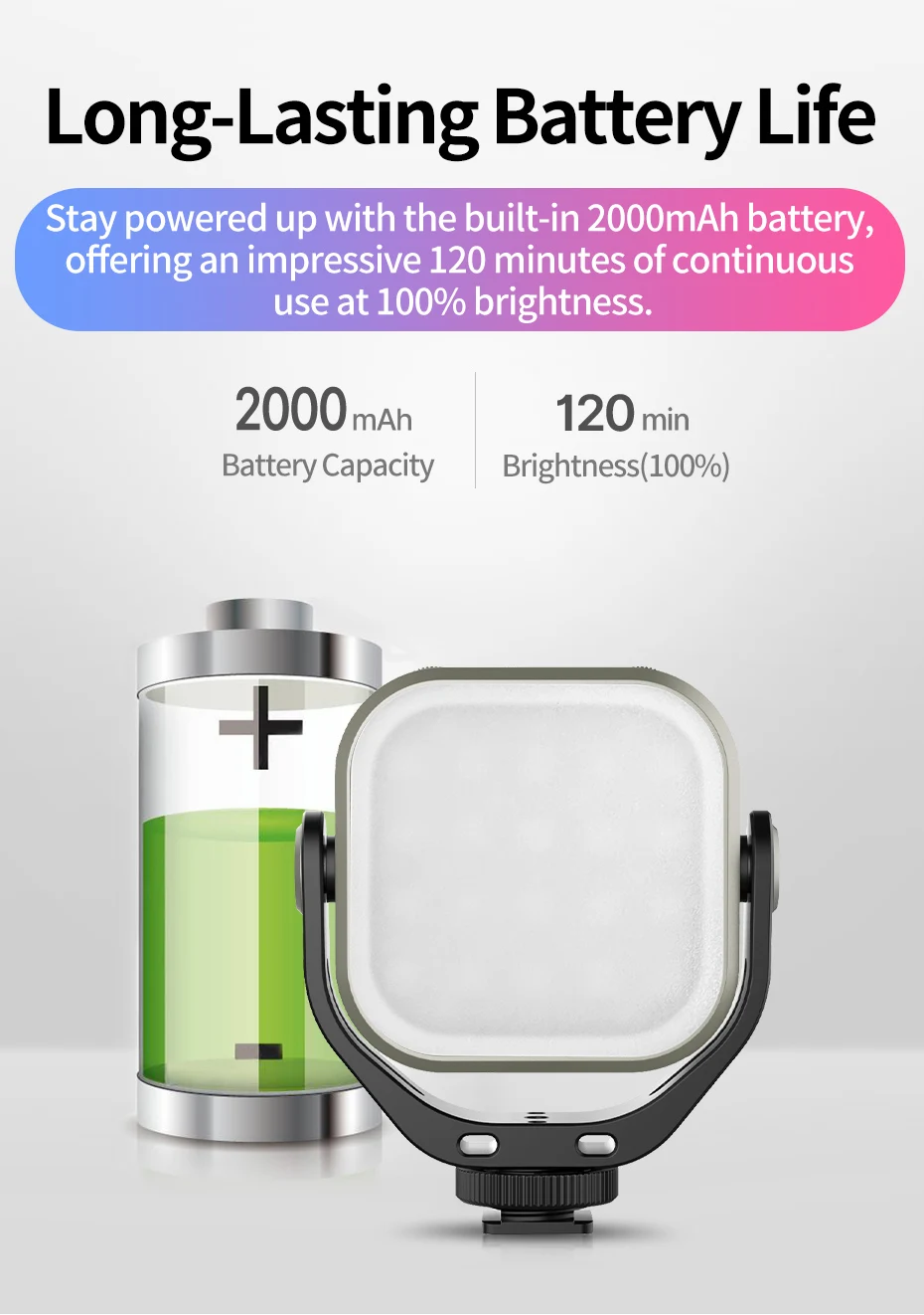 Battery Life: Up to 120 minutes at maximum brightness