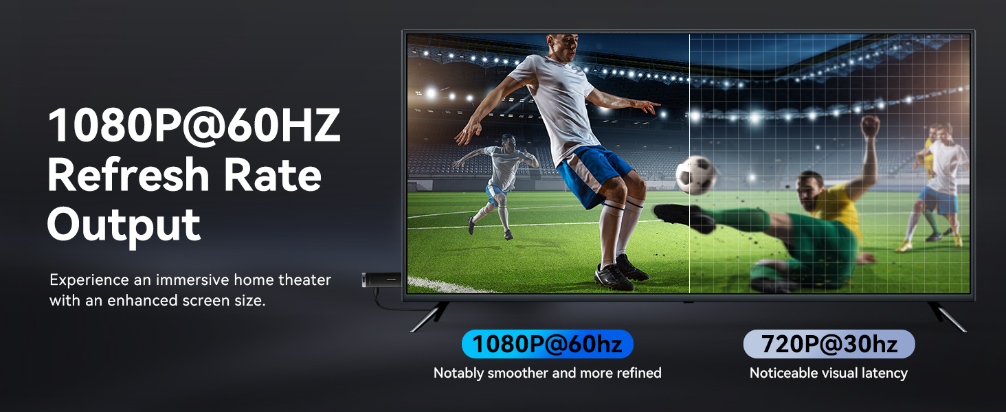 This device supports Full HD 1080p@60Hz, delivering crisp visuals with accurate color reproduction. Its automatic encoding and decoding maintain high-quality output without compression.