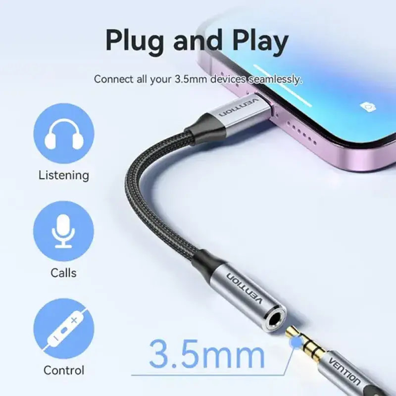 The Vention BMBHA Lightning to 3.5mm Earphone Jack Adapter is now available in Bangladesh. Get the original Vention products at the most affordable price only at Ajkershop and enjoy premium quality with the best customer service in Bangladesh.