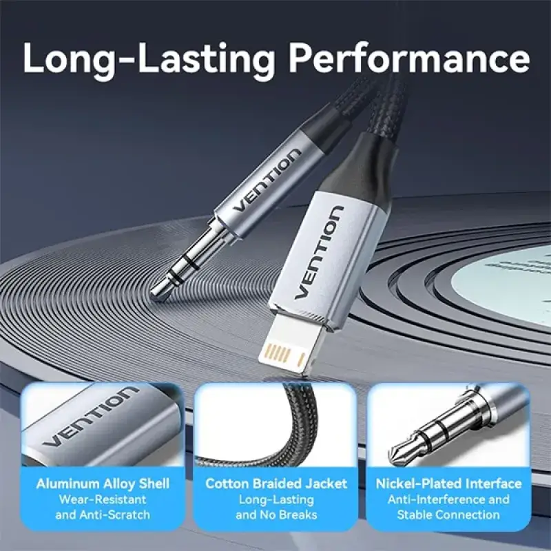 The Vention BMCHF Lightning Male to 3.5mm Male Cable is now available in Bangladesh. Get the original Vention products at the most affordable price only at Ajkershop and enjoy excellent quality with the best customer service in Bangladesh.