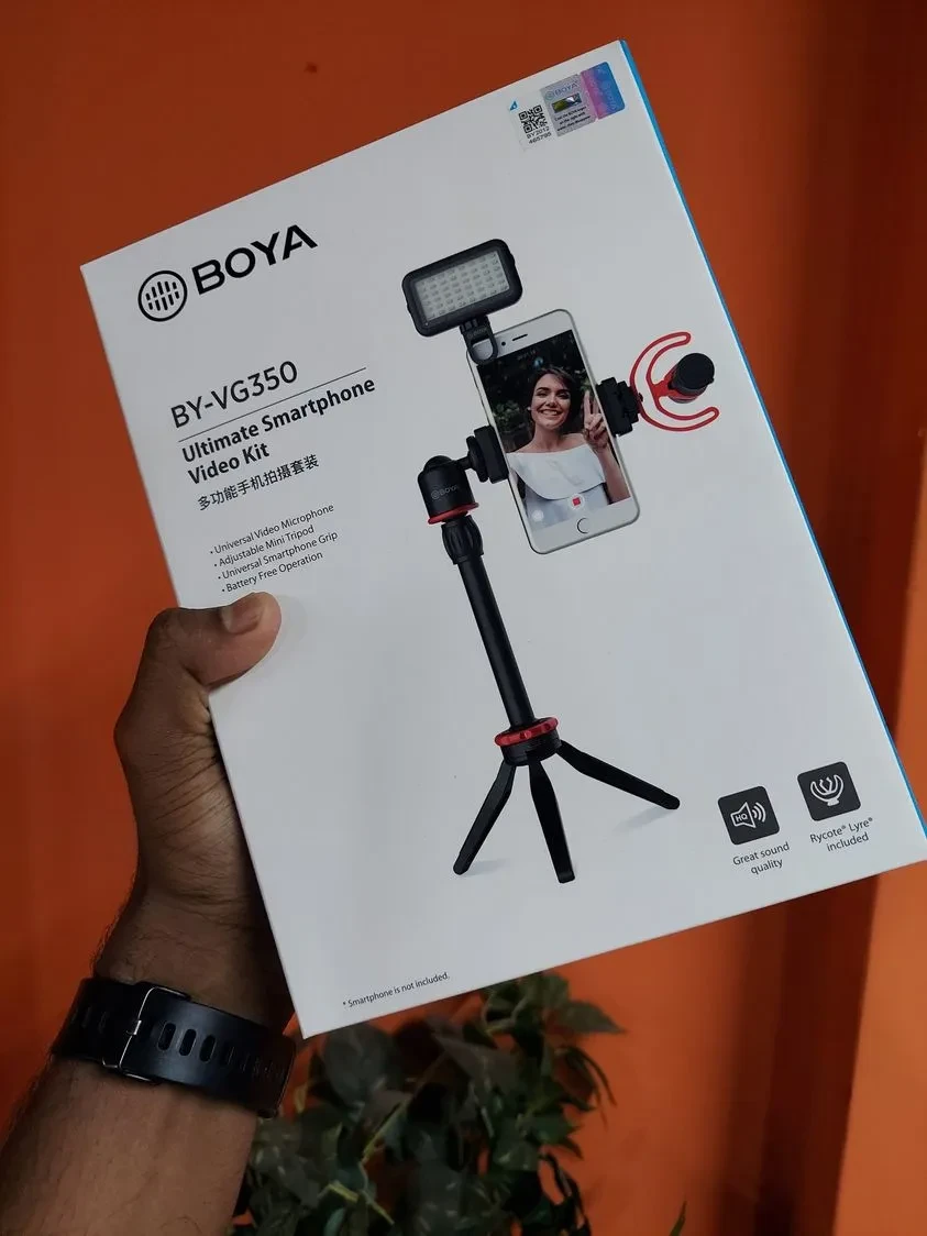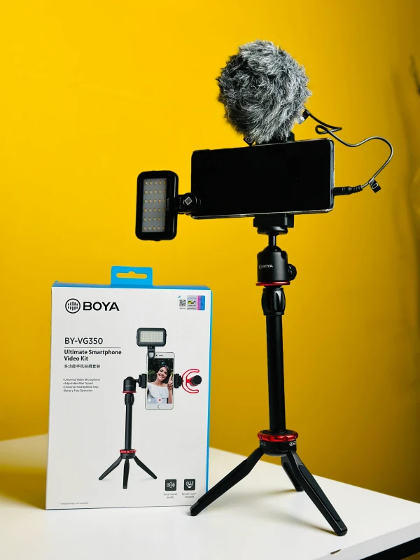 The Boya BY-VG350 All-in-One Smartphone Vlogging Kit is designed to provide hassle-free audio and lighting solutions for vlogging, podcasting, recording at home, and more. Here's what it offers: