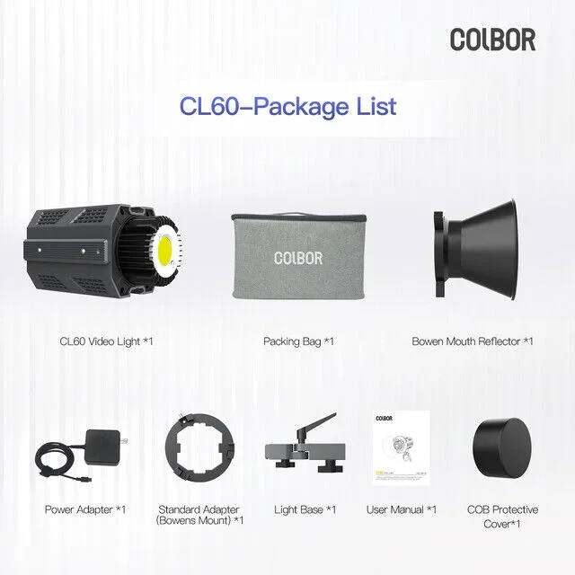 The Colbor CL60 COB Video Light – 65W Power, 2700K to 6500K, CRI 97+, Only 550g is available now in Bangladesh. Get the original products at the most affordable price only at Ajkershop and enjoy the quality with the promise of the best customer service in Bangladesh.