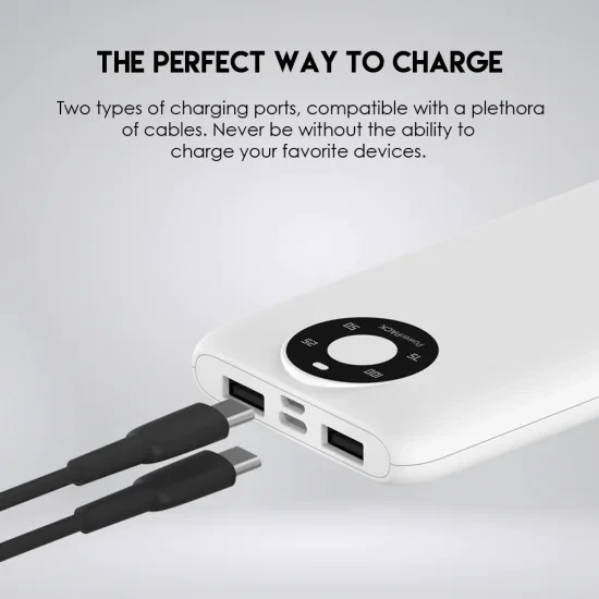 Dual Output Charging: With two types of charging ports, it's compatible with a variety of cables, ensuring you're never without the ability to charge your devices.