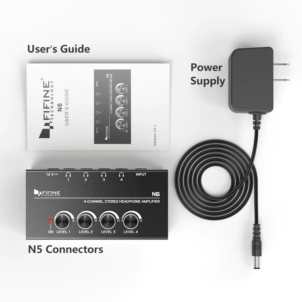 4-Channel Microamp: The FIFINE N6 is a compact headphone amplifier capable of powering up to 4 pairs of headphones simultaneously, each with its own independent volume control.