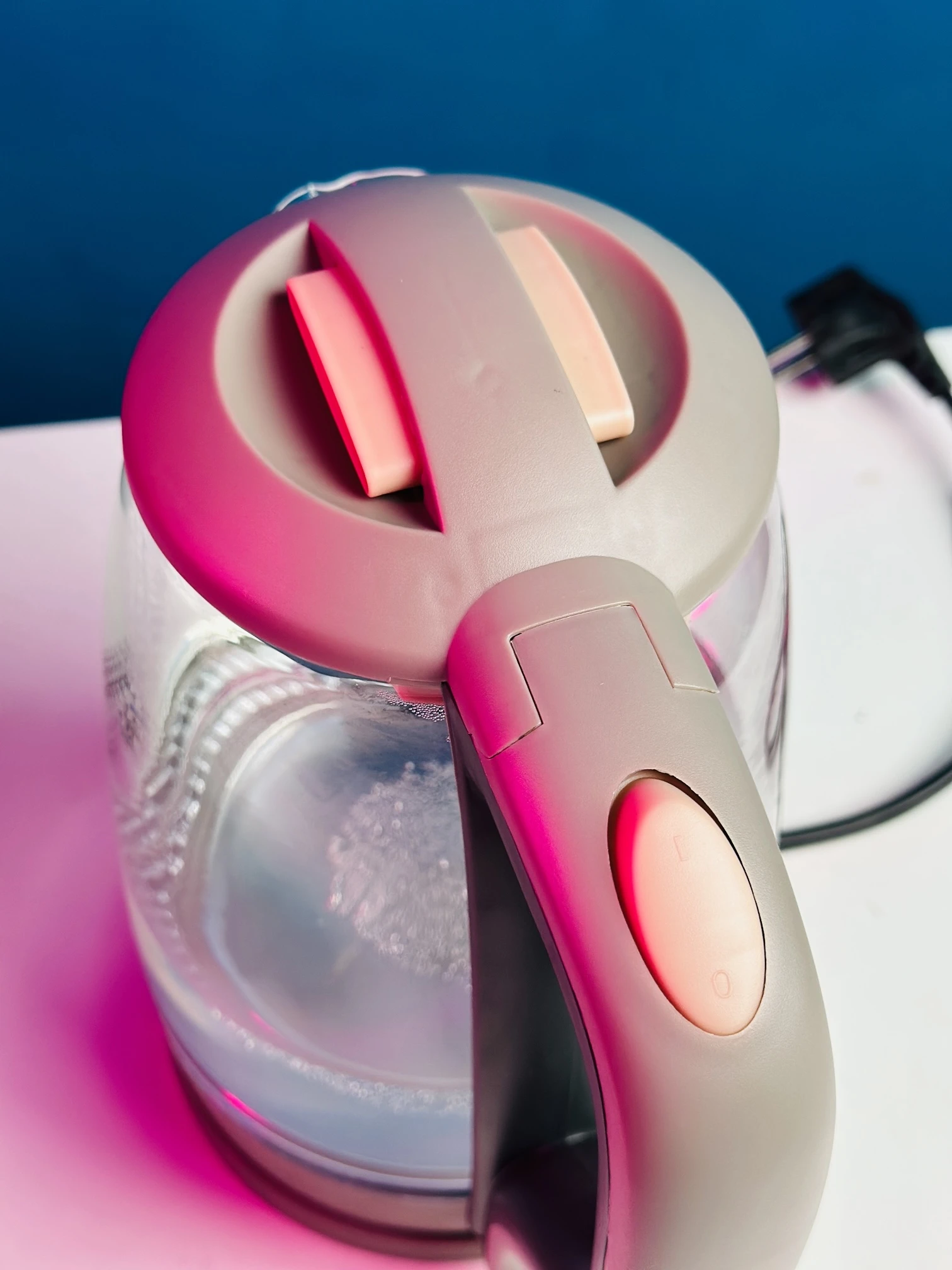 Features: Premium heat-resistant glass body for safe and hygienic use Large 1.8L capacity suitable for family and office use 1500W fast boiling for quick heating performance Elegant design with LED light indicator during operation Auto shut-off and boil-dry protection for safety 360° cordless base for easy handling and pouring Durable concealed stainless steel heating plate Wide-mouth lid for easy cleaning and refilling