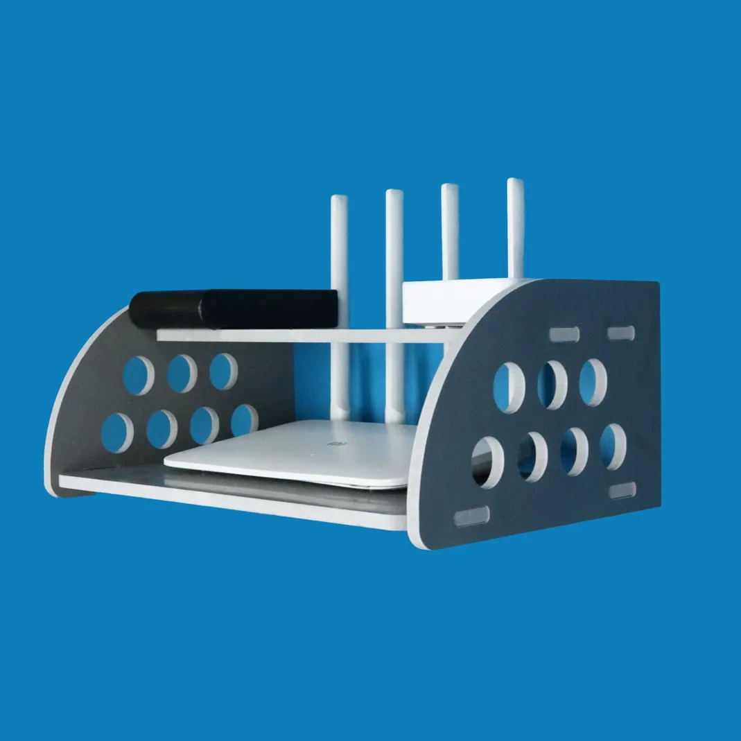 Designed as a stand for WiFi routers, Onu, and mini UPS. Can also be used as wall shelves for show-pieces.