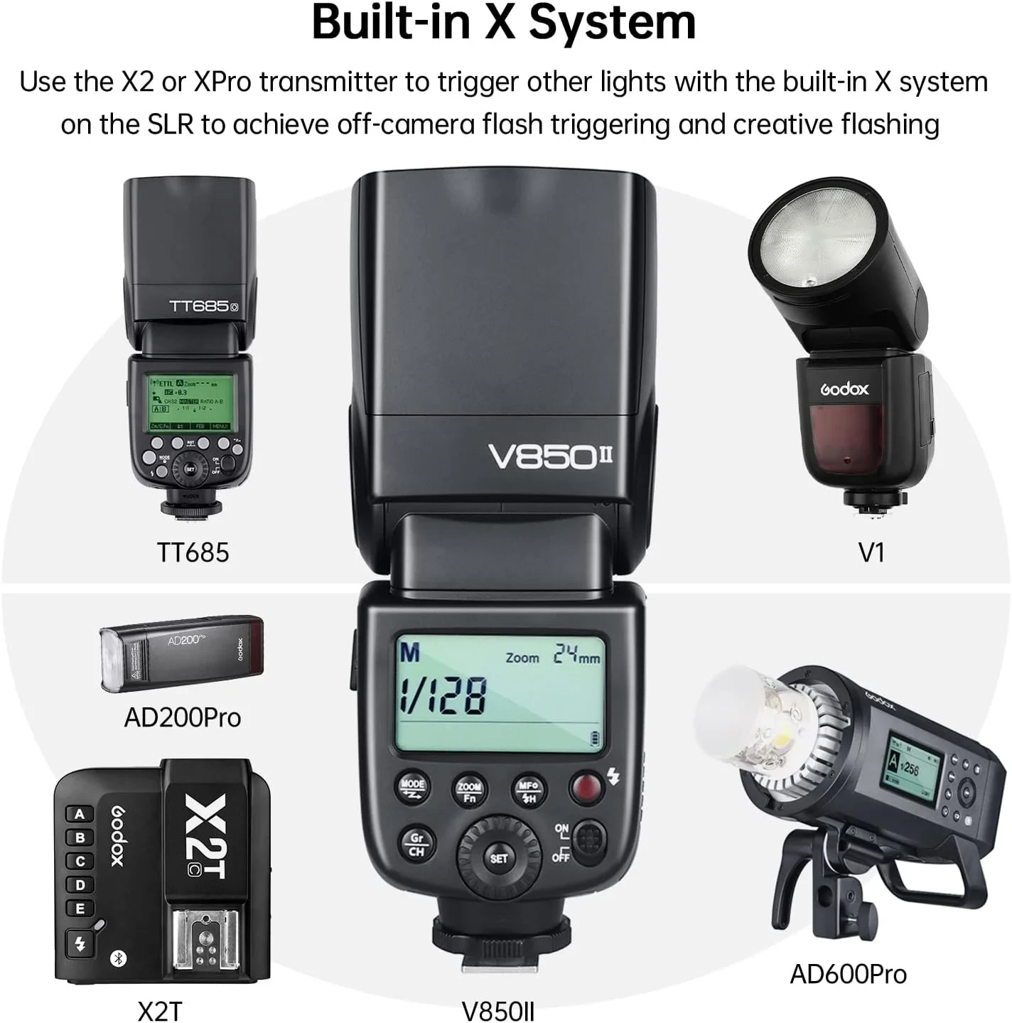 Built-in Godox 2.4G Wireless X System: Includes Master & Slave modes for wireless flash.