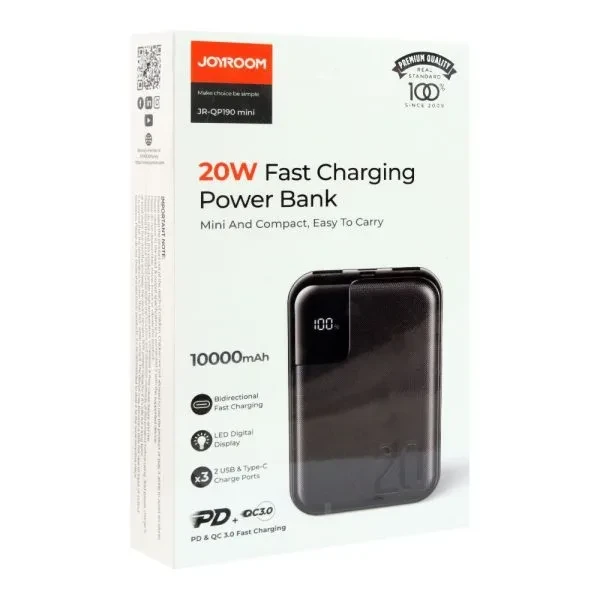 The latest price of JOYROOM JR-QP190 Mini 10000mah 20W Power Bank in Bangladesh is ৳1,750. You can buy JOYROOM JR-QP190 Mini 10000mah 20W Power Bank at the best price from our website.