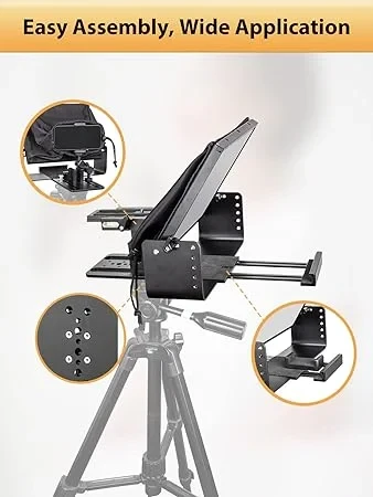 The teleprompter is easy to assemble and disassemble, making it convenient for both studio and on-the-go video production.