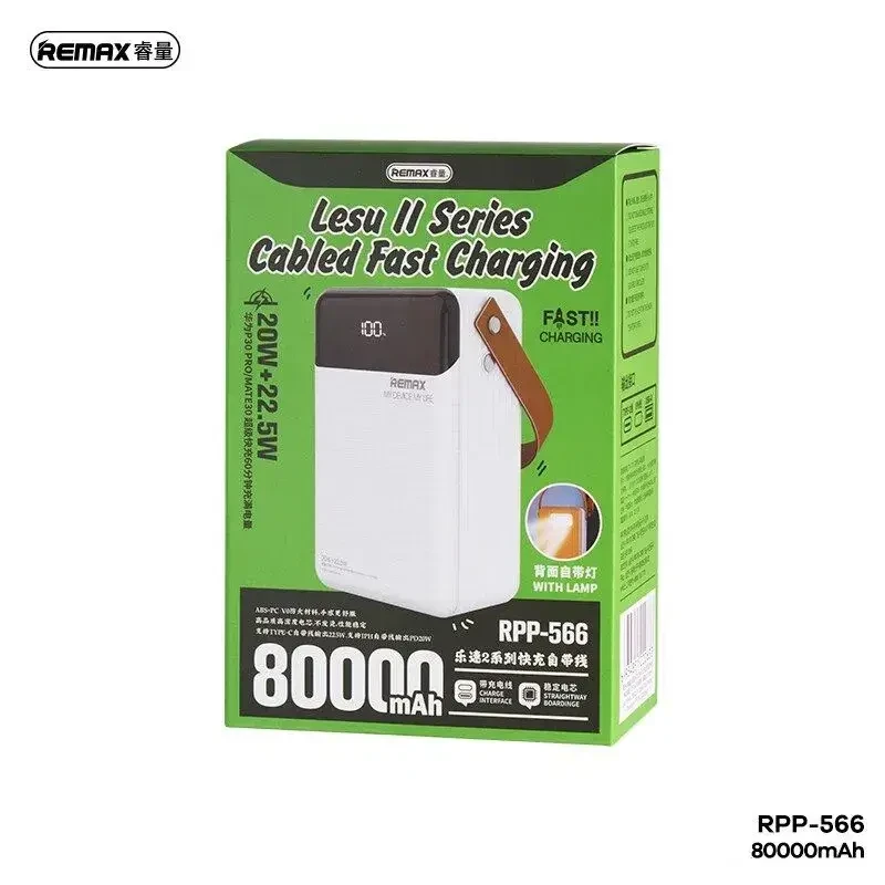 The REMAX RPP-566 22.5W 80000mAh Fast Charging Power Bank is now available in Bangladesh. Get the original products at the most affordable price only at Ajkershop and enjoy the quality with the promise of the best customer service in Bangladesh.