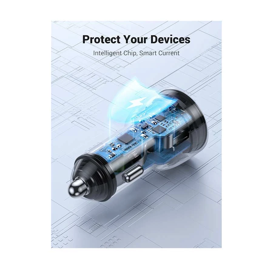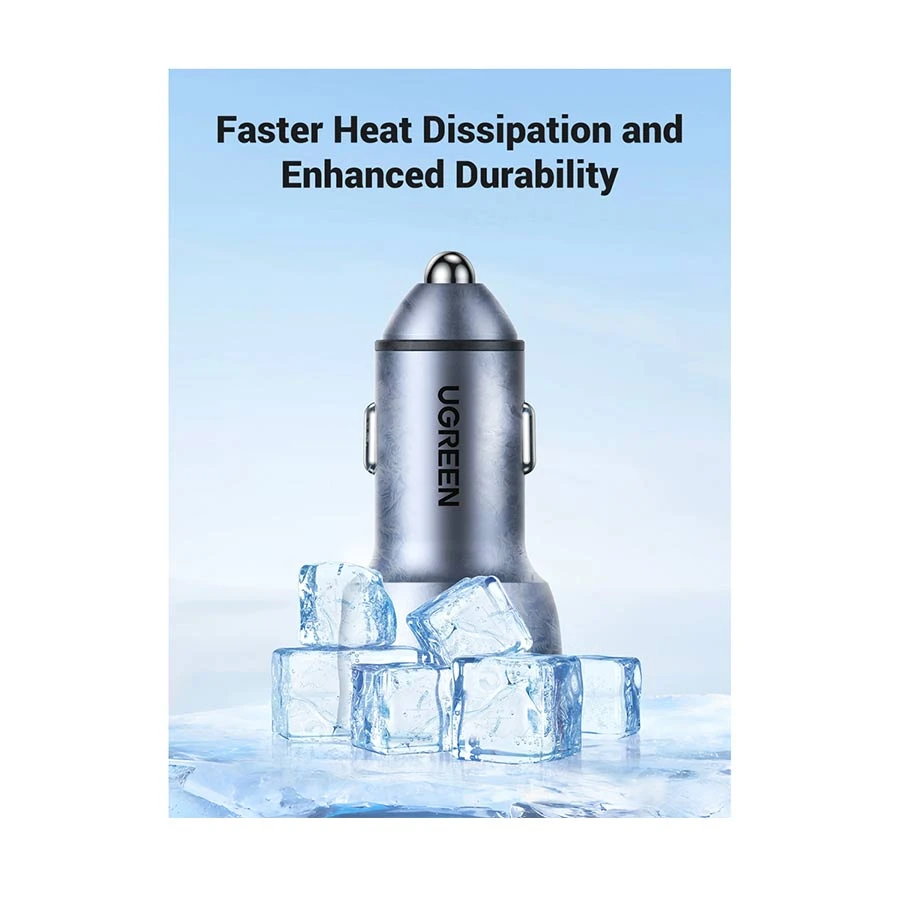 UGREEN CD213 is a dual USB-C car charger delivering up to 50W total output. It allows simultaneous fast charging for two devices with wide protocol support. Compact and travel-friendly, it stays firmly in the car cigarette lighter port while protecting your devices with multiple built-in safety features. Ideal for iPhones, Samsung Galaxy devices, iPads, gaming consoles, cameras, drones, and more.