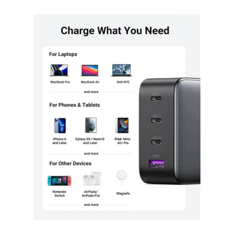 4-in-1 charging with 3 USB-C ports and 1 USB-A port