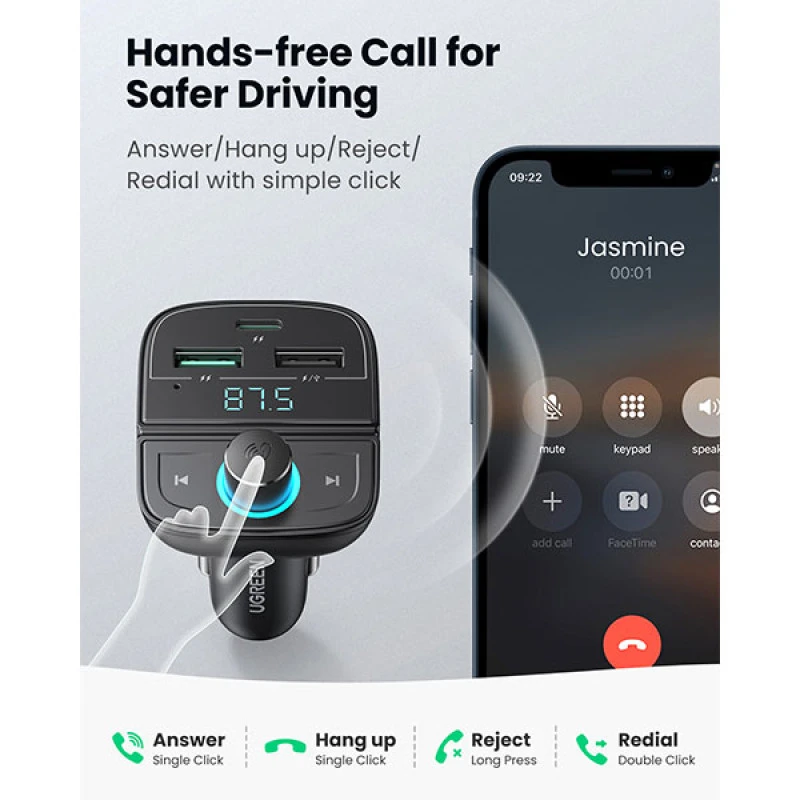 Ugreen CD229 (80910) Bluetooth FM Transmitter Car Adapter Specifications: