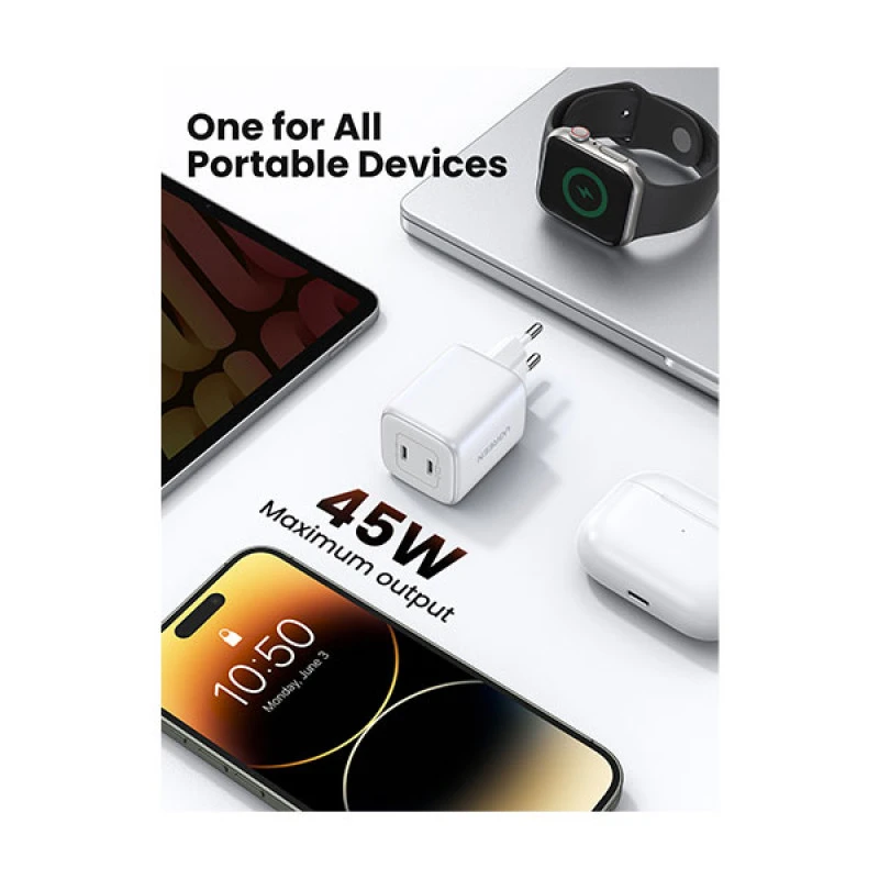 The Ugreen CD294 (15327) NEXODE 45W Dual USB-C GaN Fast Charger is now available in Bangladesh. Get the original Ugreen charger at the most affordable price only at Ajkershop, ensuring top-tier quality and the best customer service in Bangladesh.