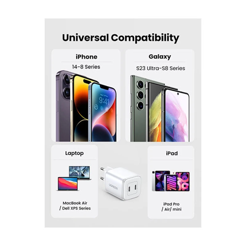The UGREEN CD294 (15327) is a compact and highly efficient 45W USB-C GaN charger built to support multiple devices simultaneously. Its dual-port design allows simultaneous fast charging for two gadgets, with intelligent power distribution. Thanks to GaN technology, it remains compact and cooler while delivering faster charging. Ideal for daily travel or power-hungry professionals, this charger is a perfect match for modern USB-C devices and offers a safe, reliable, and portable solution.