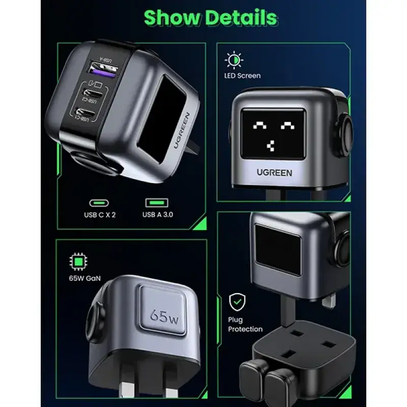 Ugreen CD361 (25686) Uno RG 65W 3-Port GaN Fast Charger – UK Price in Bangladesh