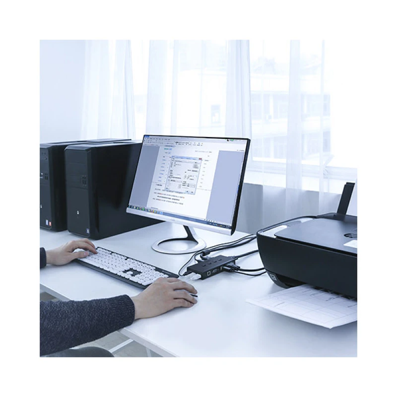 This switch box supports high-resolution video output up to 1080p, ensuring crisp visuals for professional and everyday use. The plug-and-play design means no drivers are needed—just connect and start using. It supports DDC communication, ensuring compatibility with most monitors.