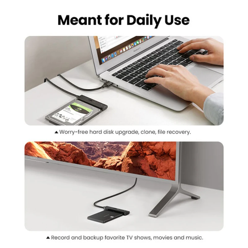 The UGREEN CM321 USB 3.0 to SATA Adapter is the ideal solution for fast and efficient data transfer from your 2.5" SATA HDDs or SSDs. Featuring a USB 3.0 interface with SATA 3.0 compatibility, it ensures blazing-fast speeds of up to 5Gbps, with additional boosts from UASP and TRIM protocols. Whether you’re upgrading storage, cloning drives, recovering data, or backing up files, the CM321 is built for reliability and ease of use.