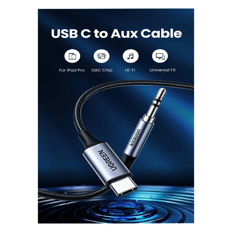 The UGREEN CM450 USB-C to 3.5mm AUX Cable makes it easy to enjoy your music anywhere. Whether you're driving, relaxing at home, or working on your laptop, this cable lets you connect your USB-C device to any 3.5mm AUX audio port. The stylish nylon-braided exterior offers tangle resistance, and the aluminum alloy connectors ensure long-term durability. Built with a high-grade DAC chip, this cable transmits pure and powerful audio — perfect for audiophiles and casual users alike.