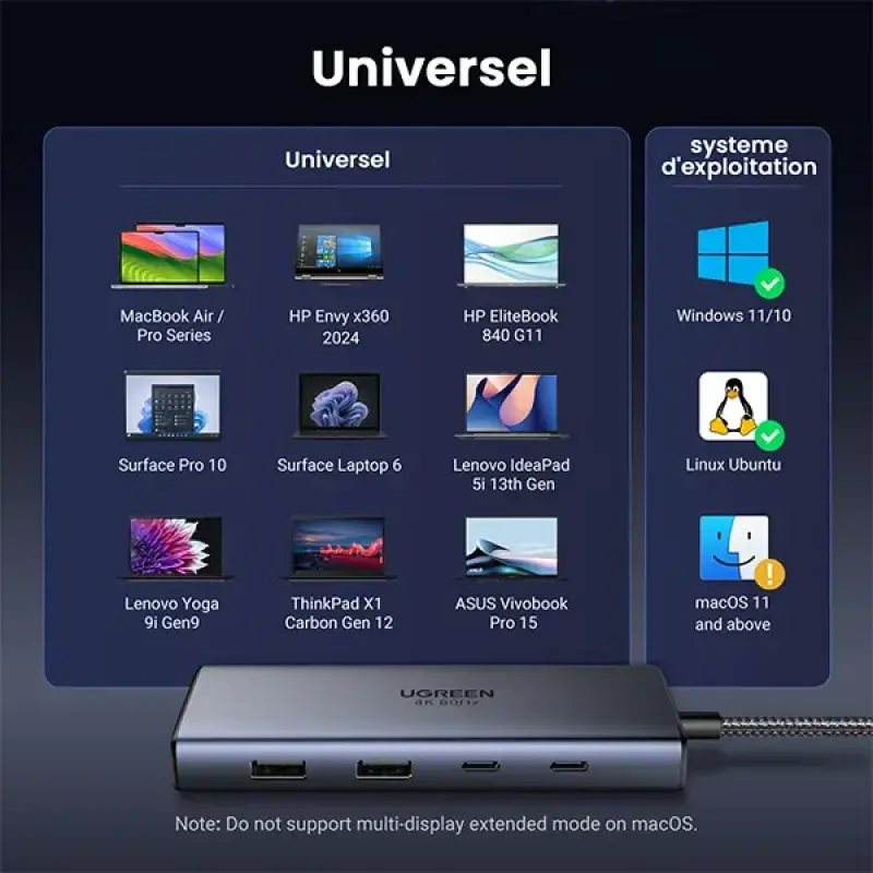 7-in-1 Multifunction Hub: Offers 2 HDMI, 2 USB-C, and 2 USB-A ports with fast 10Gbps data transfer.