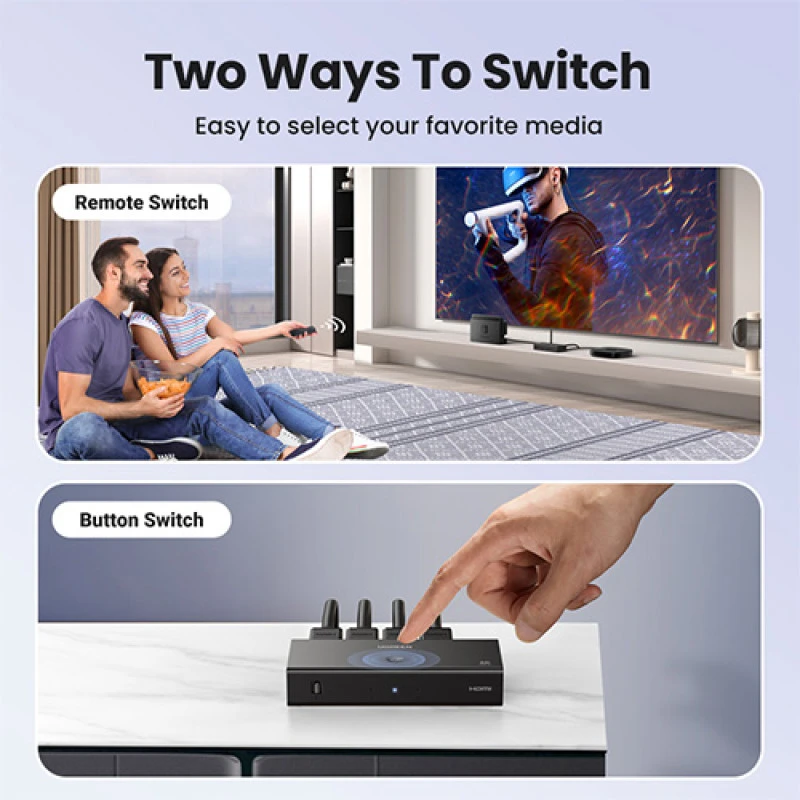The Ugreen CM598 (15376) 4K 60Hz 3 In 1 Out HDMI Splitter is now available in Bangladesh. This premium HDMI switch lets you connect up to 3 HDMI devices to a single display, making it easy to switch between gaming, work, and entertainment without repeatedly plugging and unplugging cables. It supports up to 4K@60Hz resolution, delivering a high-quality video and audio experience with Dolby and DTS surround sound support.