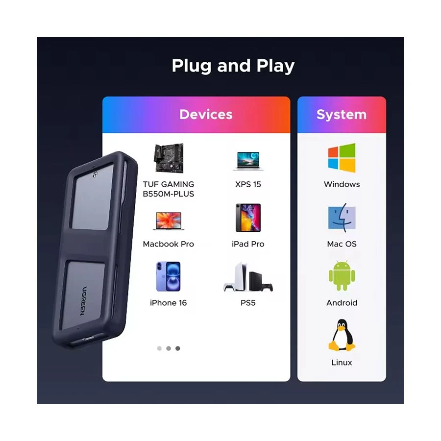The Ugreen CM777 (25665) M.2 NVMe/SATA SSD Enclosure is available now in Bangladesh. Get the original Ugreen products at the most affordable price only at Ajkershop, and enjoy top-quality performance with the best customer service in Bangladesh.