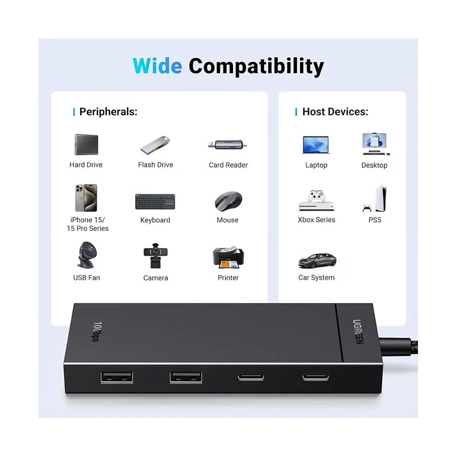 The Ugreen CM806 (35583) 4-Port USB 3.2 Gen 2 Hub is now available in Bangladesh at an affordable price. Designed for productivity and seamless connectivity, this USB hub is perfect for expanding the port options of your USB-C enabled devices like laptops, iPads, and smartphones. Whether you're working from home, in the office, or on the go, this sleek and compact hub offers high-speed data transfer and multi-device connectivity — all in one device. With support for USB 3.2 Gen 2 standard, it delivers blazing-fast data transfer speeds of up to 10Gbps, letting you transfer large files in seconds. The plug-and-play functionality makes it ideal for quick and hassle-free usage on Windows, macOS, Linux, iPadOS, and Android systems.