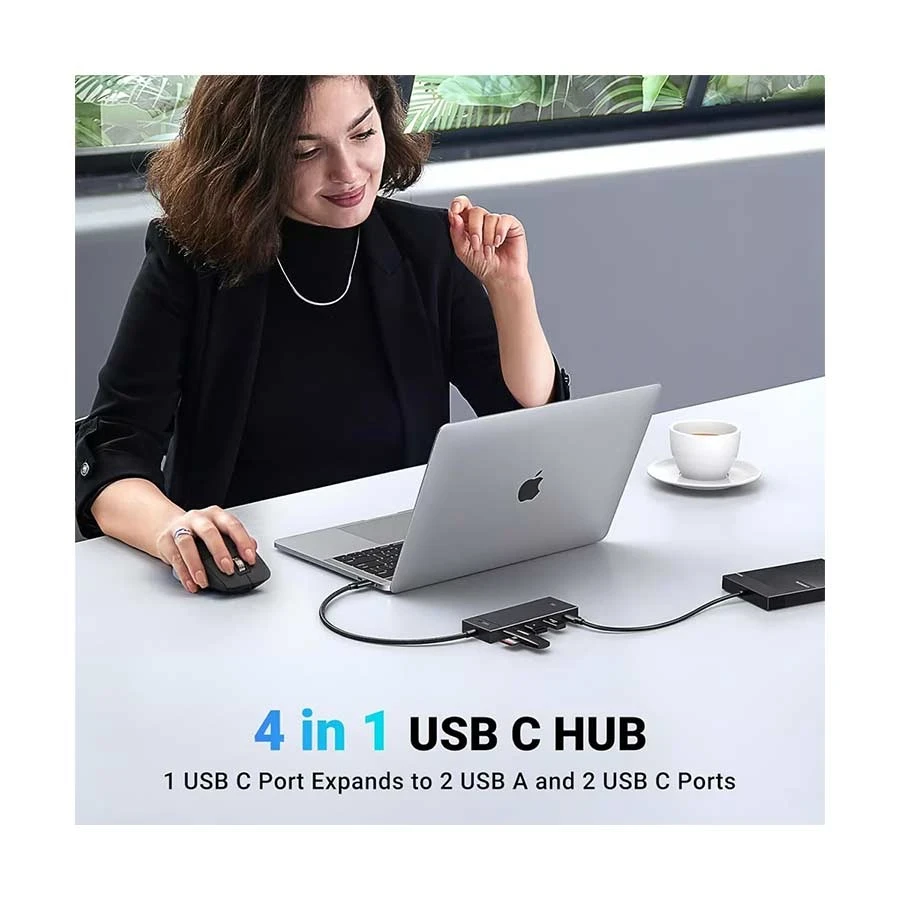 4-in-1 Connectivity: Expand your single USB-C port into 2 USB-A + 2 USB-C ports for simultaneous use.