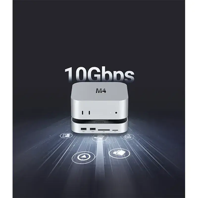The UGREEN CM841 (65487) 11-in-1 USB-C Docking Station is built specifically for Mac mini M4 and M4 Pro users who need powerful expansion in a compact footprint. It supports up to 8TB NVMe SSD storage with a maximum 10Gbps transfer speed, ideal for 4K video editing, large project backups, and everyday productivity. With a total of 11 high-speed ports, including USB-A 3.2, USB-C 3.2, and UHS-II SD/TF card slots, this dock transforms your Mac mini into a complete workstation.