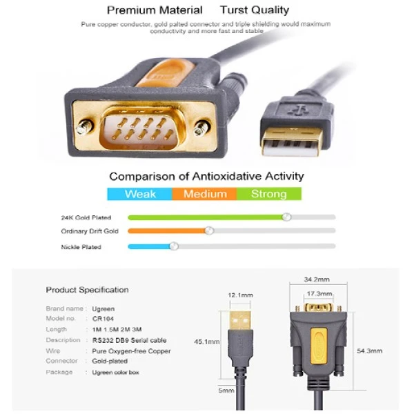 Ugreen CR104 (20211) USB to DB9 RS-232 Adapter Cable - 1.5M Price in Bangladesh